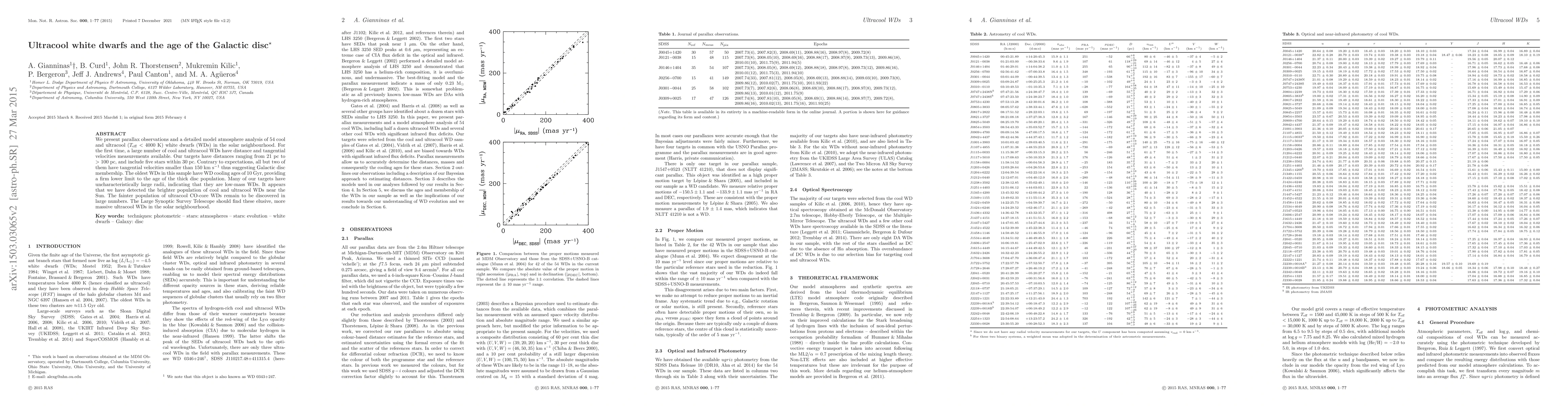 This study presents parallax observations of 54 ultracool white dwarfs, revealing that most belong to the Galactic disc and have tangential velocities under 150 km s$^{-1}$. The oldest white dwarfs in the sample suggest a lower limit age of 10 Gyr for the thick disc population.