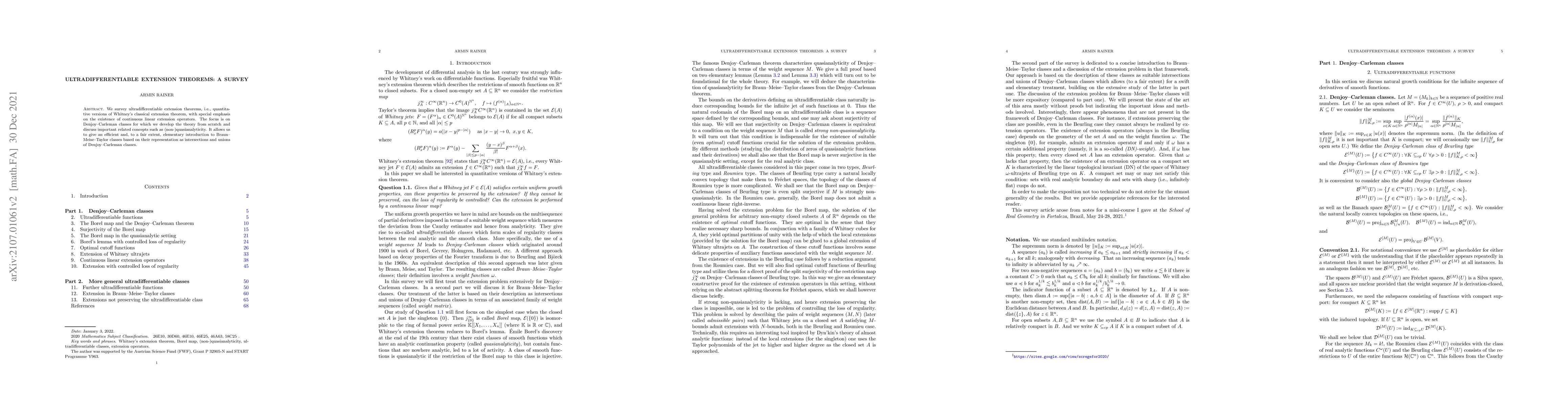This paper surveys ultradifferentiable extension theorems, focusing on continuous linear extension operators within Denjoy-Carleman classes, and introduces Braun-Meise-Taylor classes through their representation as intersections and unions of Denjoy-Carleman classes. It also discusses (non-)quasianalyticity and develops the theory from foundational principles.