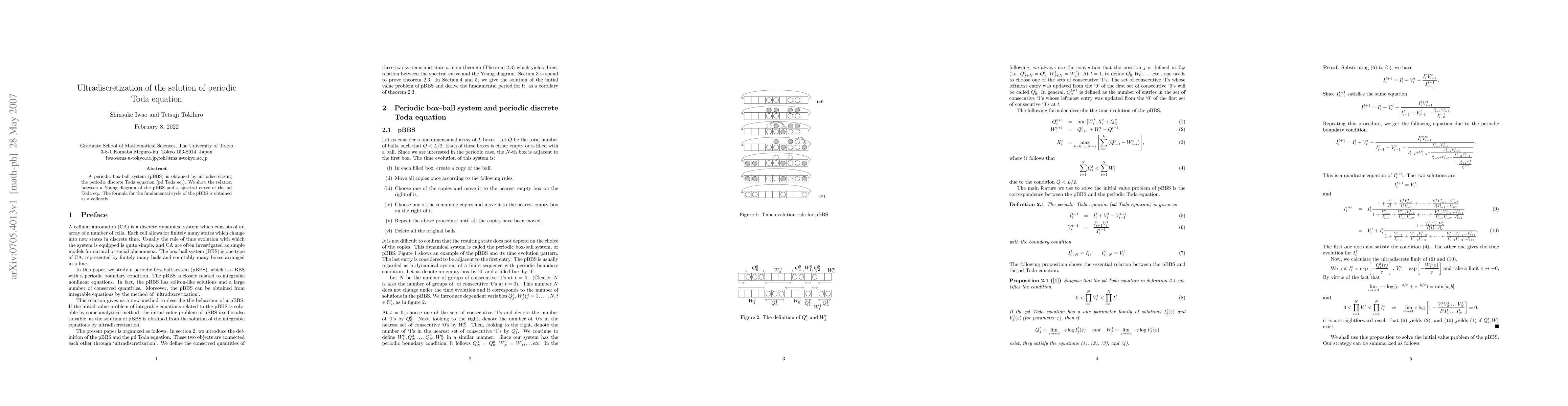 A periodic box-ball system (pBBS) is obtained by ultradiscretizing the periodic discrete Toda equation (pd Toda eq.). We show the relation between a Young diagram of the pBBS and a spectral curve of the pd Toda eq.. The formula for the fundamental cycle of the pBBS is obtained as a colloraly.