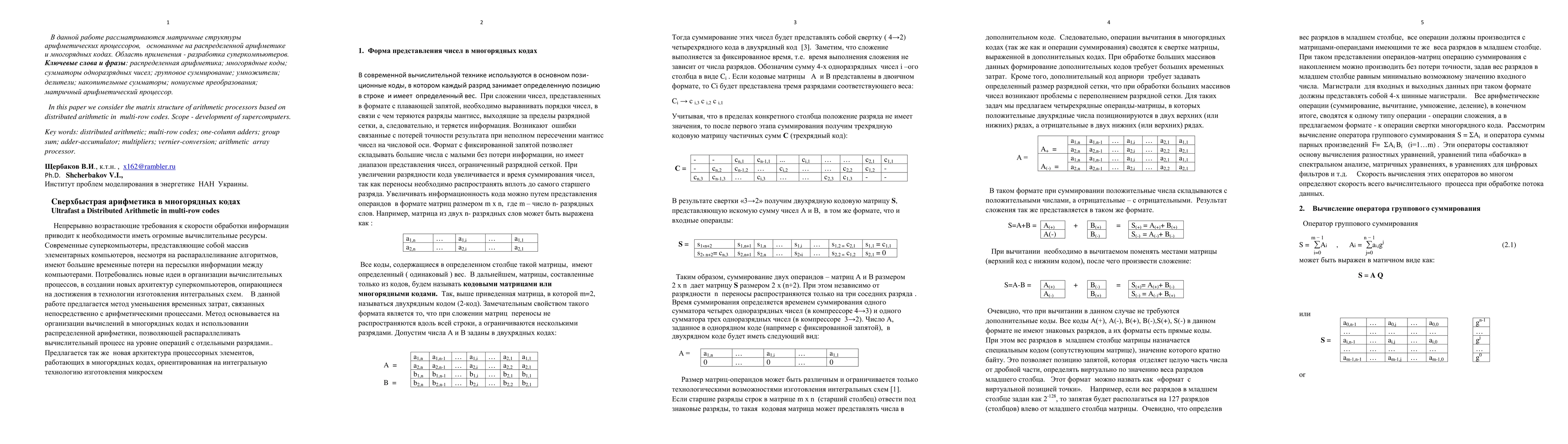 In this paper we consider the matrix structure of arithmetic processors based on distributed arithmetic in multi-row codes. Scope - development of supercomputers.
