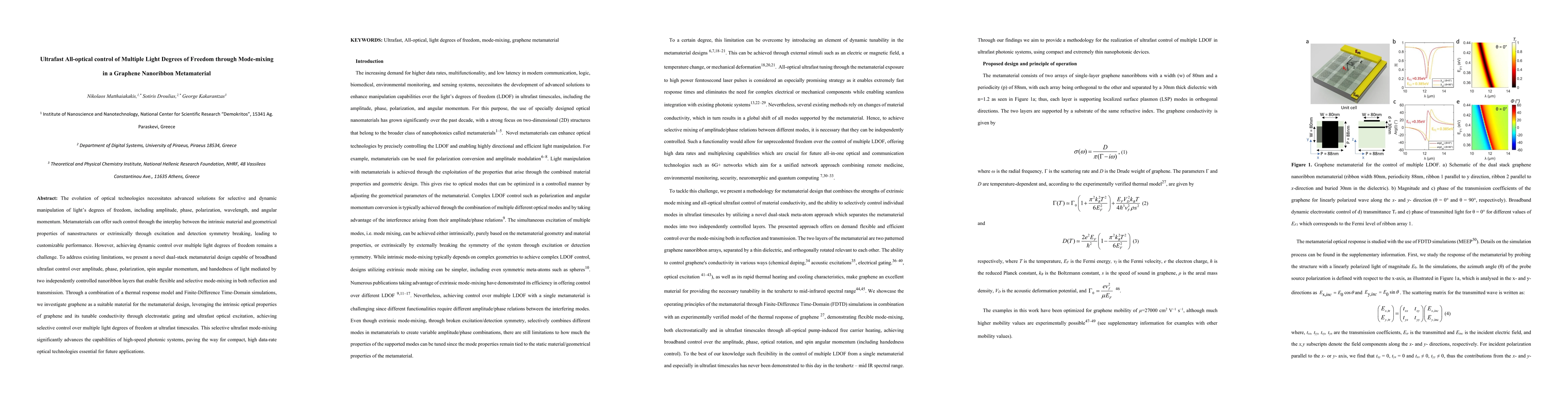 The evolution of optical technologies necessitates advanced solutions for selective and dynamic manipulation of light's degrees of freedom, including amplitude, phase, polarization, wavelength, and angular momentum. Metamaterials can offer such control through the interplay between the intrinsic material and geometrical properties of nanostructures or extrinsically through excitation and detection symmetry breaking, leading to customizable performance. However, achieving dynamic control over multiple light degrees of freedom remains a challenge. To address existing limitations, we present a novel dual-stack metamaterial design capable of broadband ultrafast control over amplitude, phase, polarization, spin angular momentum, and handedness of light mediated by two independently controlled nanoribbon layers that enable flexible and selective mode-mixing in both reflection and transmission. Through a combination of a thermal response model and Finite-Difference Time-Domain simulations, we investigate graphene as a suitable material for the metamaterial design, leveraging the intrinsic optical properties of graphene and its tunable conductivity through electrostatic gating and ultrafast optical excitation, achieving selective control over multiple light degrees of freedom at ultrafast timescales. This selective ultrafast mode-mixing significantly advances the capabilities of high-speed photonic systems, paving the way for compact, high data-rate optical technologies essential for future applications.