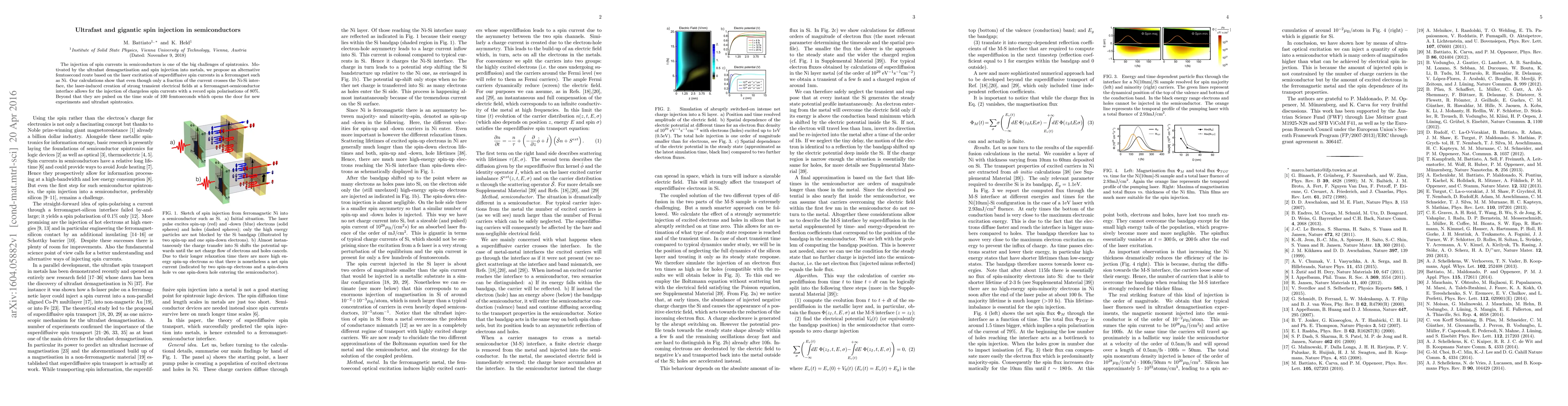 This paper proposes a femtosecond laser-induced method for ultrafast and gigantic spin injection in semiconductors, leveraging superdiffusive spin currents in ferromagnets like Ni. The method achieves record spin polarizations of 80% and operates on a timescale of 100 femtoseconds, paving the way for new ultrafast spintronics experiments.