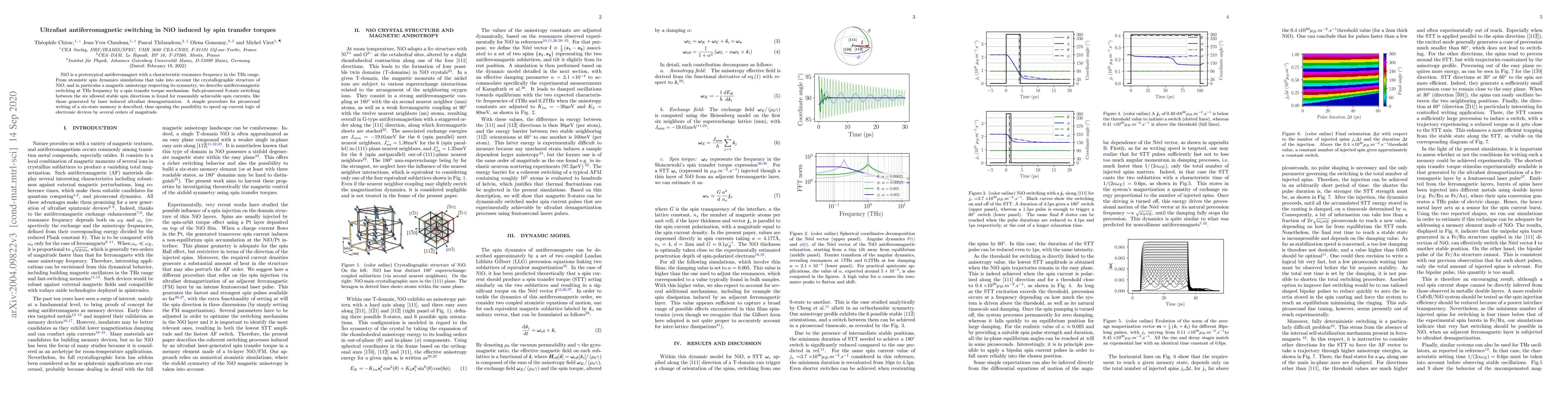 This paper describes ultrafast antiferromagnetic switching in NiO via spin transfer torques, enabling sub-picosecond transitions between six stable spin states using achievable spin currents. This breakthrough could significantly enhance the speed of electronic devices by enabling a six-state memory.