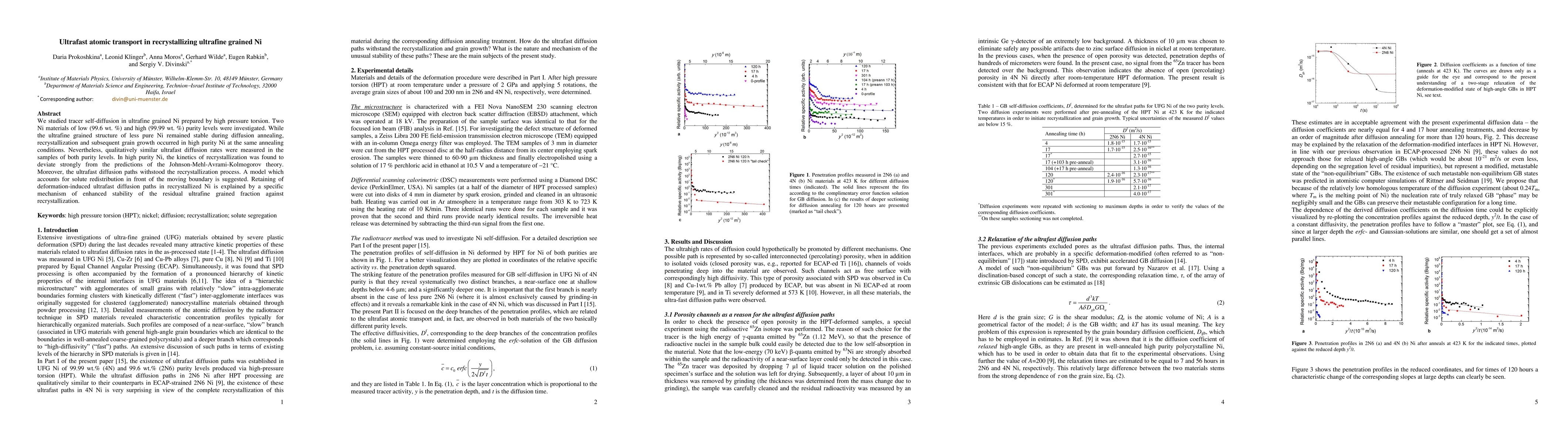 Researchers studied ultrafine grained nickel (Ni) with varying purity levels, finding that high-purity samples recrystallized faster than expected, while maintaining similar diffusion rates as lower-purity samples.