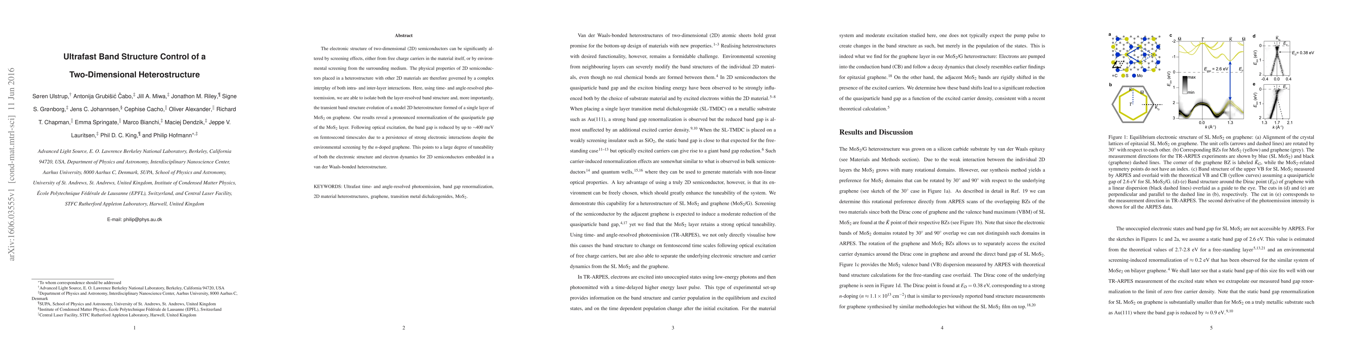 The electronic structure of two-dimensional (2D) semiconductors can be significantly altered by screening effects, either from free charge carriers in the material itself, or by environmental screening from the surrounding medium. The physical properties of 2D semiconductors placed in a heterostructure with other 2D materials are therefore governed by a complex interplay of both intra- and inter-layer interactions. Here, using time- and angle-resolved photoemission, we are able to isolate both the layer-resolved band structure and, more importantly, the transient band structure evolution of a model 2D heterostructure formed of a single layer of MoS$_2$ on graphene. Our results reveal a pronounced renormalization of the quasiparticle gap of the MoS$_2$ layer. Following optical excitation, the band gap is reduced by up to $\sim\!$400 meV on femtosecond timescales due to a persistence of strong electronic interactions despite the environmental screening by the $n$-doped graphene. This points to a large degree of tuneability of both the electronic structure and electron dynamics for 2D semiconductors embedded in a van der Waals-bonded heterostructure.