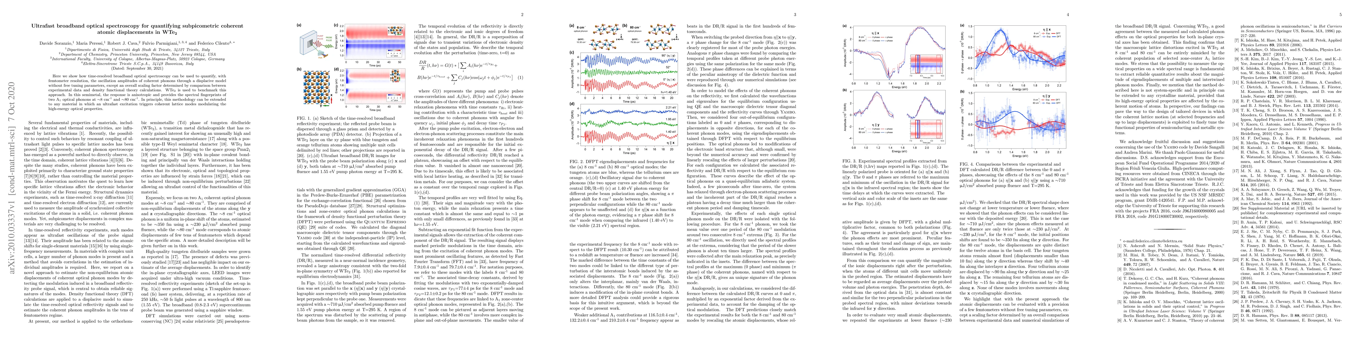 This paper demonstrates the use of ultrafast broadband optical spectroscopy to quantify subpicometric coherent atomic displacements in $WTe_2$ with femtometer resolution, employing a displacive model without free parameters. The method is shown to be effective in identifying anisotropic phonon oscillations in the material.