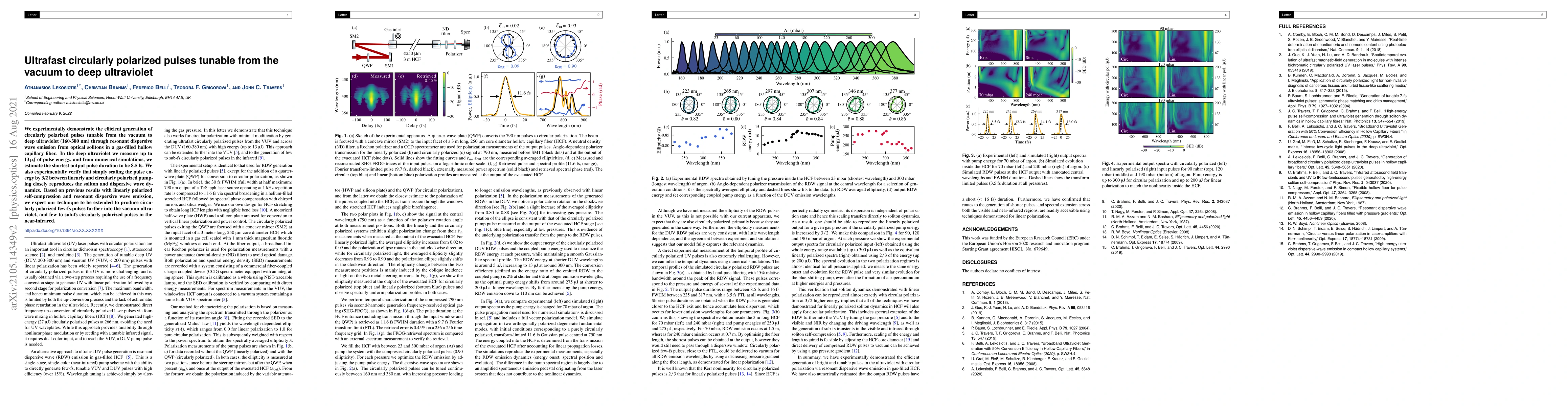 The research demonstrates the generation of circularly polarized ultrafast pulses from vacuum to deep UV (160-380 nm) using resonant dispersive wave emission from optical solitons in a gas-filled hollow capillary fiber.