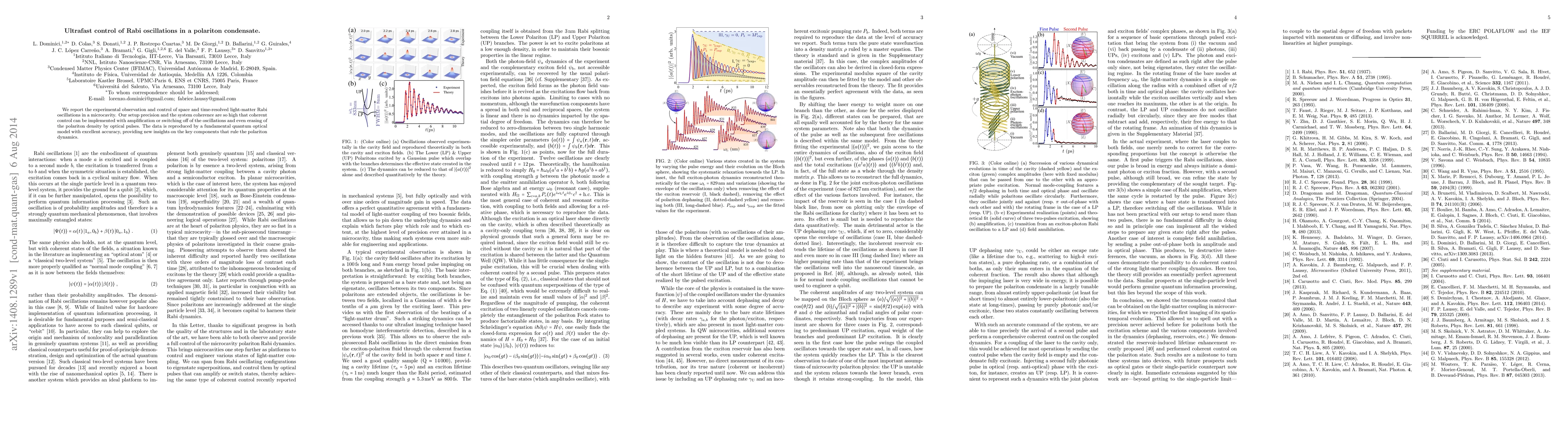 This paper demonstrates the precise control of light-matter Rabi oscillations in a microcavity polariton condensate, achieving amplification, switching, and erasure of oscillations using optical pulses. The findings are well-explained by a fundamental quantum optical model, offering new insights into polariton dynamics.