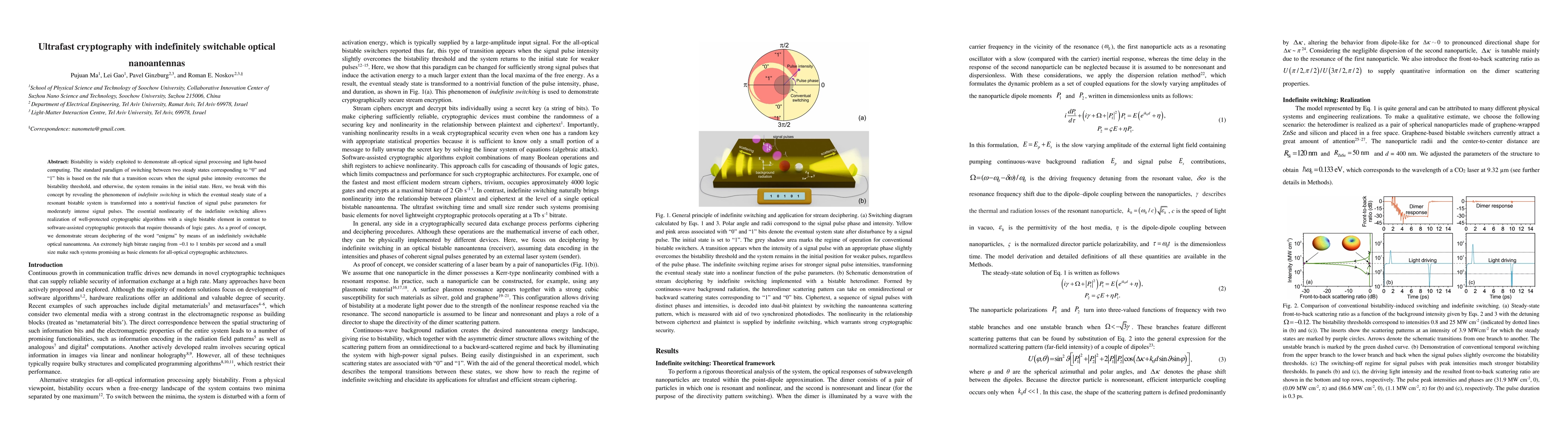 Researchers developed ultrafast cryptography using indefinitely switchable optical nanoantennas, enabling high-speed, single-component encryption with potentially terabits per second speeds.