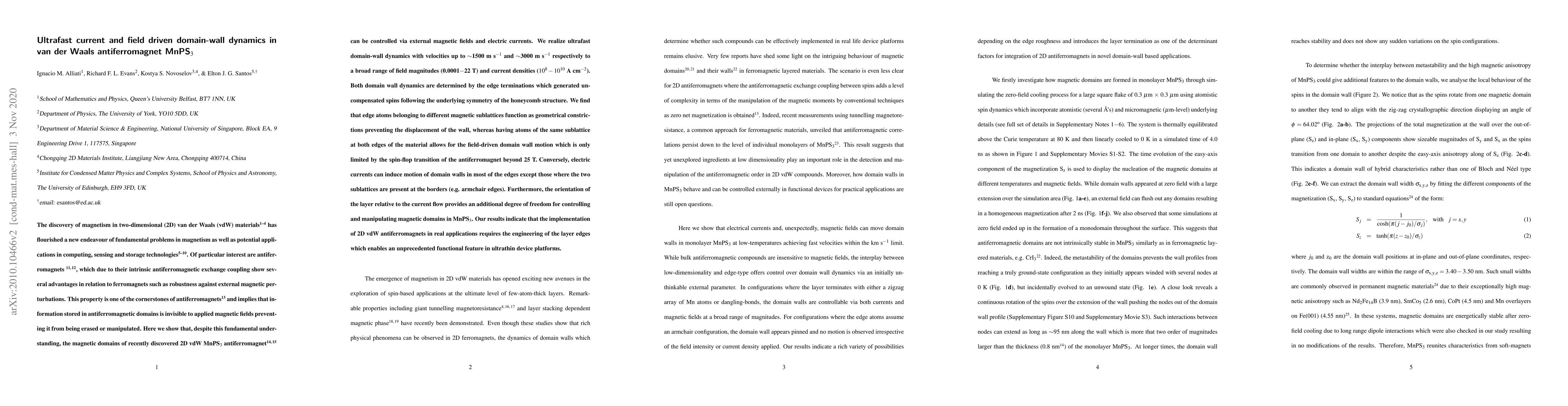 The discovery of magnetism in two-dimensional (2D) van der Waals (vdW) materials has flourished a new endeavour of fundamental problems in magnetism as well as potential applications in computing, sensing and storage technologies. Of particular interest are antiferromagnets, which due to their intrinsic antiferromagnetic exchange coupling show several advantages in relation to ferromagnets such as robustness against external magnetic perturbations. This property is one of the cornerstones of antiferromagnets and implies that information stored in antiferromagnetic domains is invisible to applied magnetic fields preventing it from being erased or manipulated. Here we show that, despite this fundamental understanding, the magnetic domains of recently discovered vdW MnPS3 antiferromagnet can be controlled via external magnetic fields and currents. We realize ultrafast domain-wall dynamics with velocities up to 1500 m/s and 3000 m/s respectively to a broad range of fields and current densities. Both domain wall dynamics are determined by the edge terminations which generated uncompensated spins following the underlying symmetry of the honeycomb structure. We find that edge atoms belonging to different magnetic sublattices function as geometrical constrictions preventing the displacement of the wall, whereas having atoms of the same sublattice at both edges of the material allows for the field-driven domain wall motion which is only limited by the spin-flop transition of the antiferromagnet beyond 25 T. Conversely, electric currents can induce motion of domain walls in most of the edges except those where the two sublattices are present at the borders (e.g. armchair edges). Our results indicate that the implementation of 2D vdW antiferromagnets in real applications requires the engineering of the layer edges which enables an unprecedented functional feature in ultrathin device platforms.