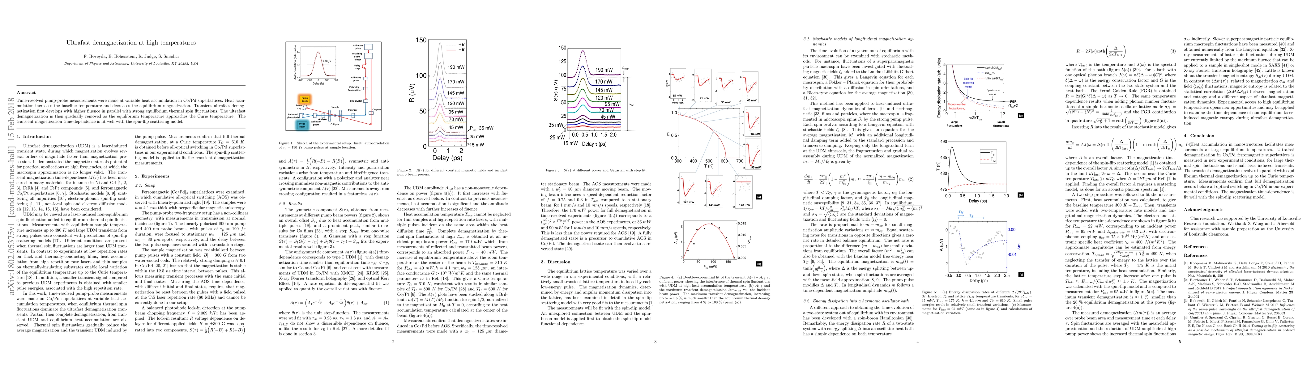 Time-resolved pump-probe measurements were made at variable heat accumulation in Co/Pd superlattices. Heat accumulation increases the baseline temperature and decreases the equilibrium magnetization. Transient ultrafast demagnetization first develops with higher fluence in parallel with strong equilibrium thermal spin fluctuations. The ultrafast demagnetization is then gradually removed as the equilibrium temperature approaches the Curie temperature. The transient magnetization time-dependence is fit well with the spin-flip scattering model.