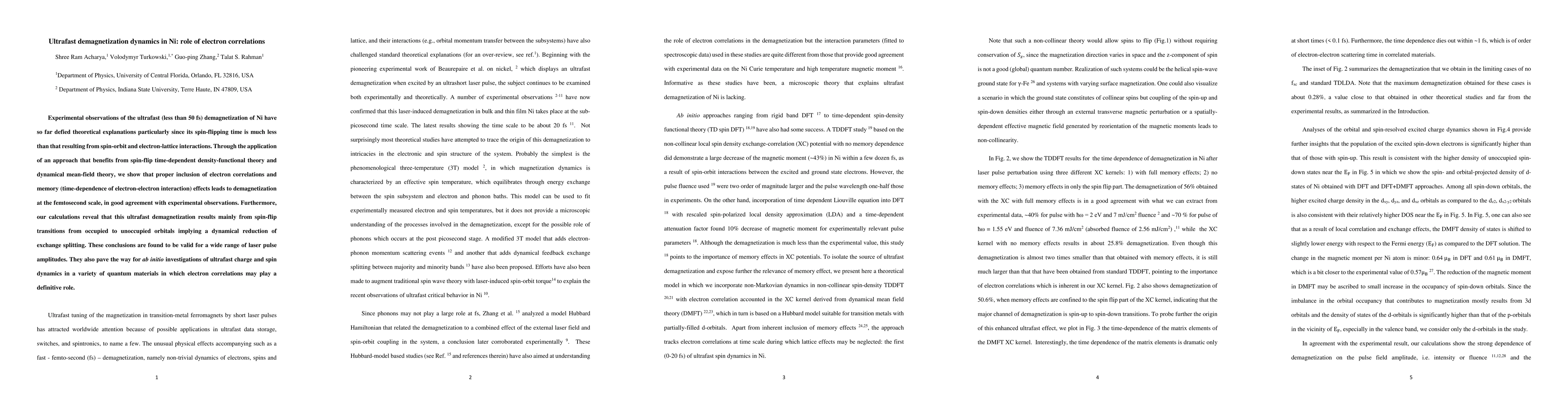 This paper demonstrates that ultrafast demagnetization in Ni can be explained by incorporating electron correlations and memory effects, revealing that spin-flip transitions from occupied to unoccupied orbitals drive the process. This approach aligns with experimental observations and suggests a broader applicability for studying ultrafast dynamics in quantum materials.
