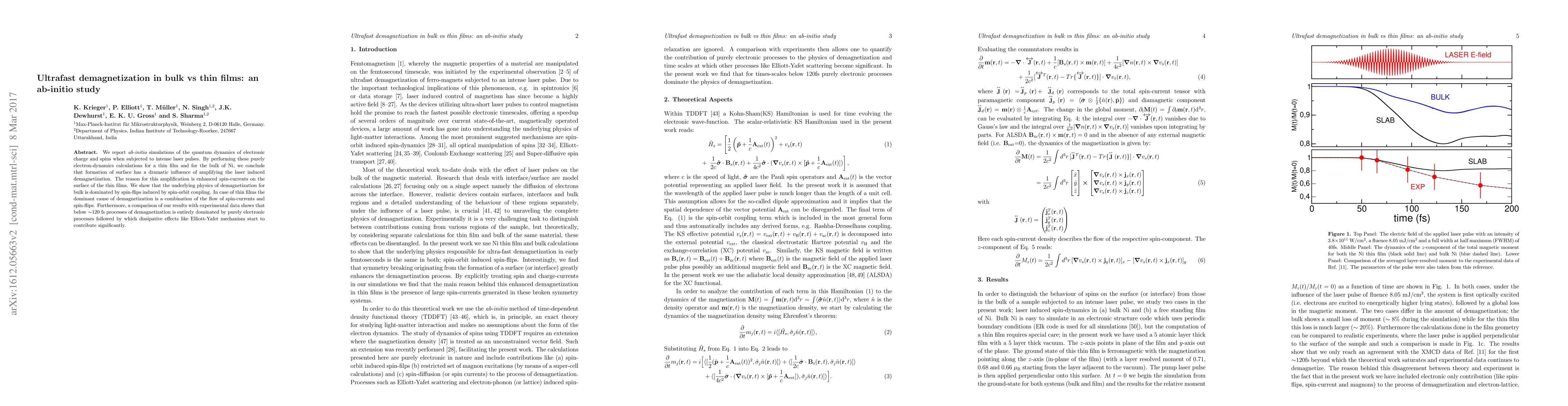 We report on {\it ab-initio} simulations of the quantum dynamics of electronic charge and spin when subjected to intense laser pulses. By performing separate calculations for a Ni thin film and bulk Ni, we conclude that surface effects have a dramatic influence on amplifying the laser induced demagnetization. We show that the reason for this amplification is due to increased spin-currents on the surface of the thin film. This enhancement is a direct consequence of the broken symmetry originating from the surface formation. We find that the underlying physics of demagnetization, during the early femtoseconds, for both bulk and thin film is dominated by spin-flips induced by spin-orbit coupling. After the first $\sim 40$ fs this changes in that the dominant cause of demagnetization is the flow of spin-currents, which leads to stronger demagnetization in the film compared to that of the bulk.