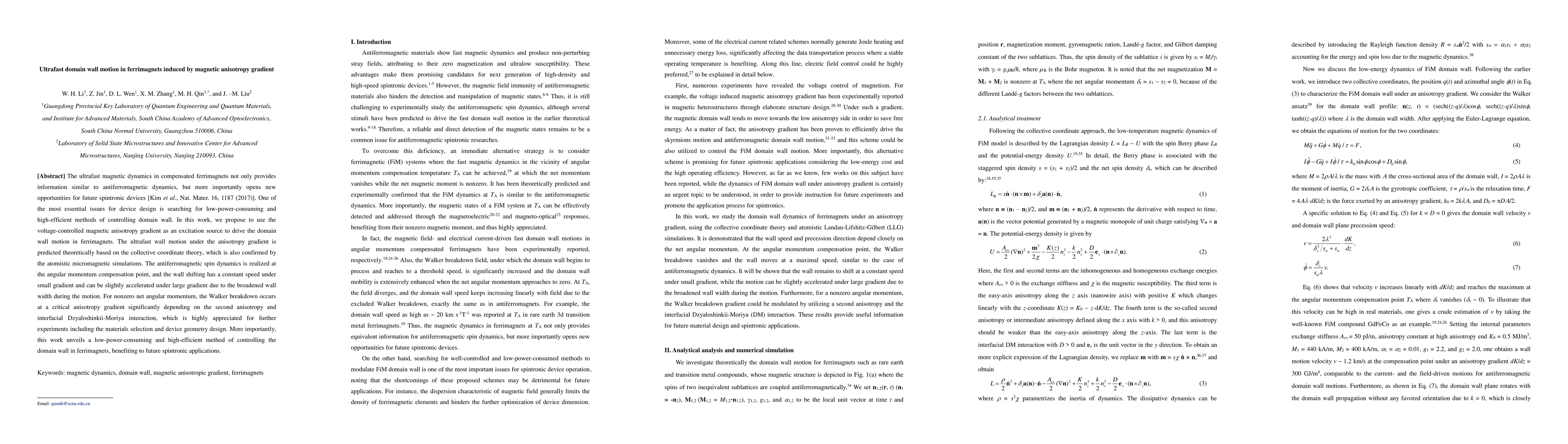 This paper explores ultrafast domain wall motion in ferrimagnets driven by voltage-controlled magnetic anisotropy gradients, proposing a low-power method for domain wall control. The theoretical predictions and simulations reveal constant and accelerated wall speeds under small and large gradients, respectively, and highlight the significance of anisotropy and interfacial interactions for future spintronic devices.