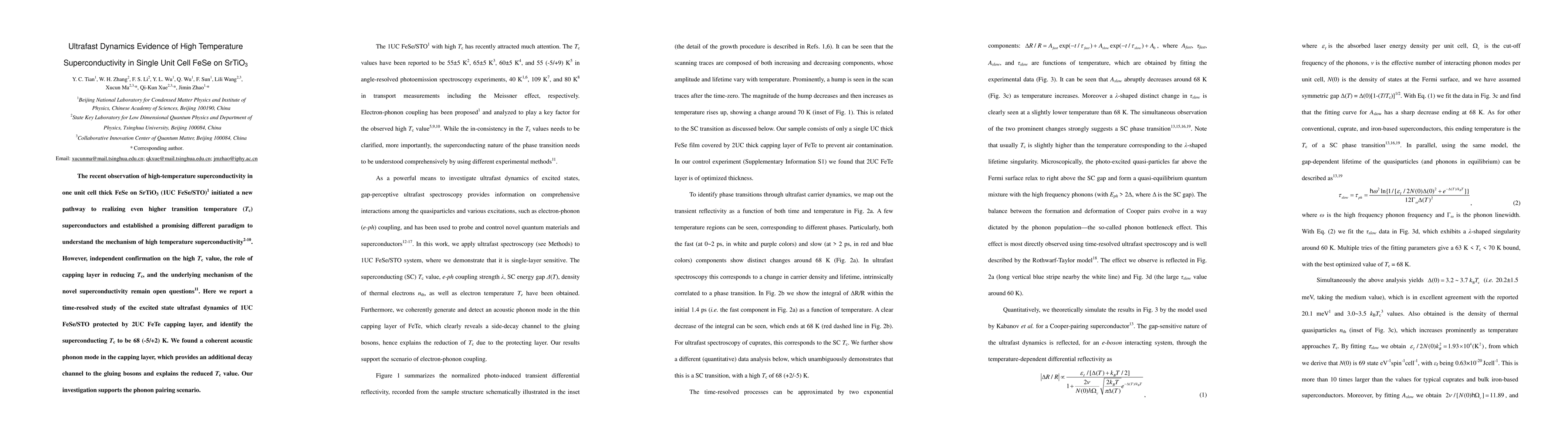 This study confirms the high-temperature superconductivity of single unit cell FeSe on SrTiO3, with a transition temperature of 68 (-5/+2) K. The research reveals a coherent acoustic phonon mode in the capping layer, which reduces the Tc and supports a phonon pairing mechanism.