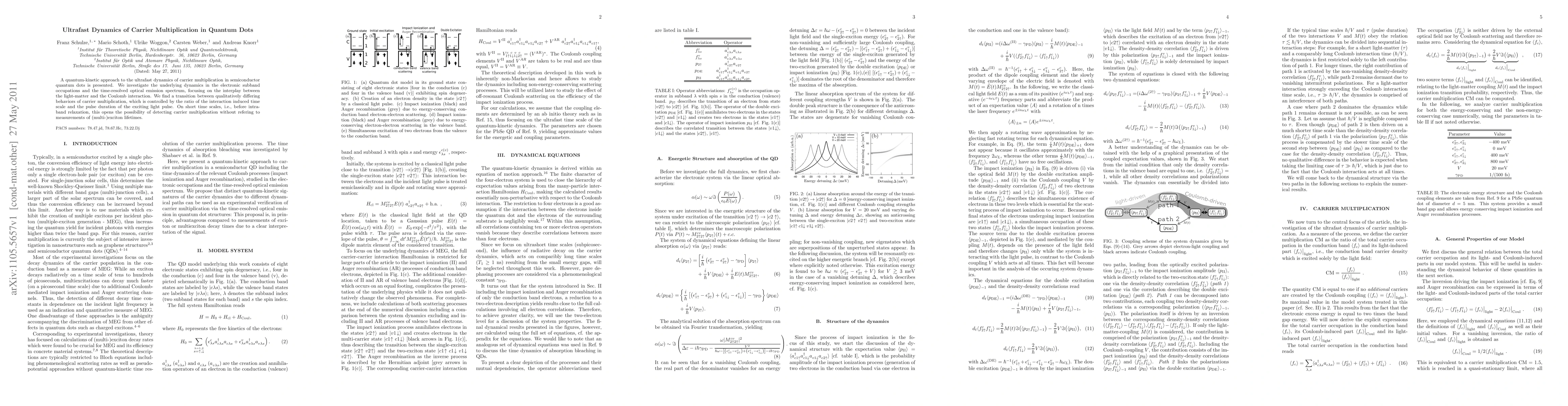 This paper explores the ultrafast dynamics of carrier multiplication in quantum dots using quantum-kinetic methods, revealing a transition in behavior controlled by the interaction time scale and pulse duration. It suggests a method to detect carrier multiplication without relying on exciton lifetime measurements.