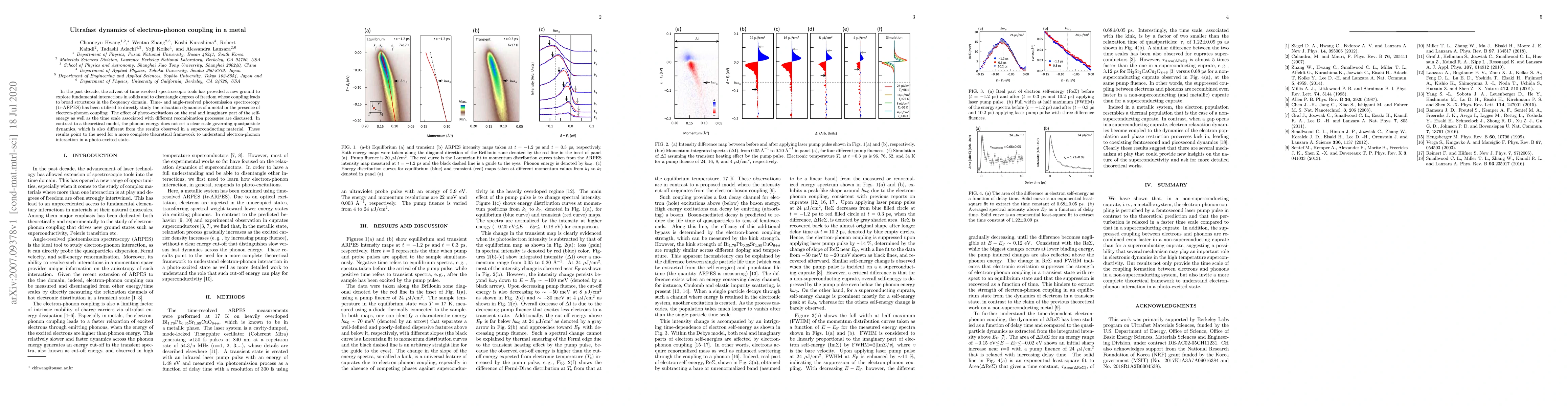 In the past decade, the advent of time-resolved spectroscopic tools has provided a new ground to explore fundamental interactions in solids and to disentangle degrees of freedom whose coupling leads to broad structures in the frequency domain. Time- and angle-resolved photoemission spectroscopy (tr-ARPES) has been utilized to directly study the relaxation dynamics of a metal in the presence of electron-phonon coupling. The effect of photo-excitations on the real and imaginary part of the self-energy as well as the time scale associated with different recombination processes are discussed. In contrast to a theoretical model, the phonon energy does not set a clear scale governing quasiparticle dynamics, which is also different from the results observed in a superconducting material. These results point to the need for a more complete theoretical framework to understand electron-phonon interaction in a photo-excited state.