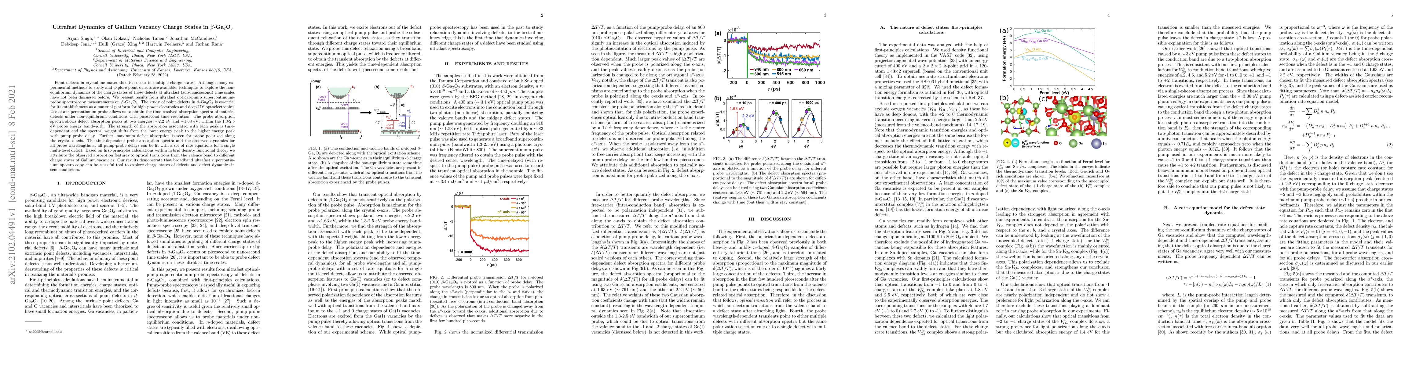 Point defects in crystalline materials often occur in multiple charge states. Although many experimental methods to study and explore point defects are available, techniques to explore the non-equilibrium dynamics of the charge states of these defects at ultrafast (sub-nanosecond) time scales have not been discussed before. We present results from ultrafast optical-pump supercontinuum-probe spectroscopy measurements on $\beta$-Ga$_2$O$_3$. The study of point defects in $\beta$-Ga$_2$O$_3$ is essential for its establishment as a material platform for high-power electronics and deep-UV optoelectronics. Use of a supercontinuum probe allows us to obtain the time-resolved absorption spectra of material defects under non-equilibrium conditions with picosecond time resolution. The probe absorption spectra shows defect absorption peaks at two energies, $\sim$2.2 eV and $\sim$1.63 eV, within the 1.3-2.5 eV probe energy bandwidth. The strength of the absorption associated with each peak is time-dependent and the spectral weight shifts from the lower energy peak to the higher energy peak with pump-probe delay. Further, maximum defect absorption is seen for probe polarized along the crystal c-axis. The time-dependent probe absorption spectra and the observed dynamics for all probe wavelengths at all pump-probe delays can be fit with a set of rate equations for a single multi-level defect. Based on first-principles calculations within hybrid density functional theory we attribute the observed absorption features to optical transitions from the valence band to different charge states of Gallium vacancies. Our results demonstrate that broadband ultrafast supercontinuum spectroscopy can be a useful tool to explore charge states of defects and defect dynamics in semiconductors.