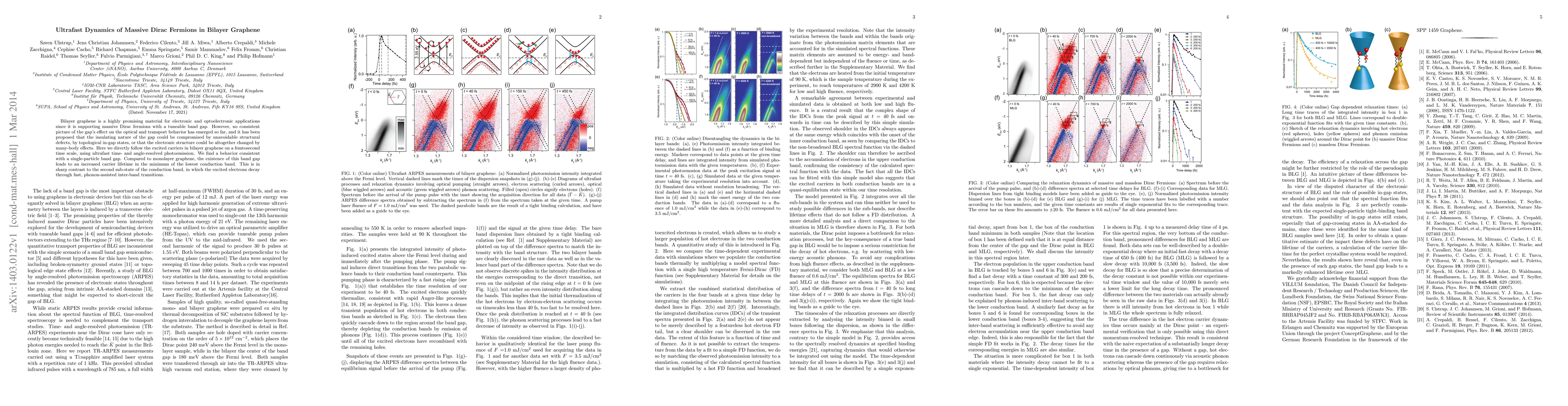 This study employs ultrafast photoemission to investigate the dynamics of massive Dirac fermions in bilayer graphene, revealing a single-particle band gap that increases carrier lifetime in the lowest conduction band, contrasting with rapid phonon-assisted transitions in the second sub-state.