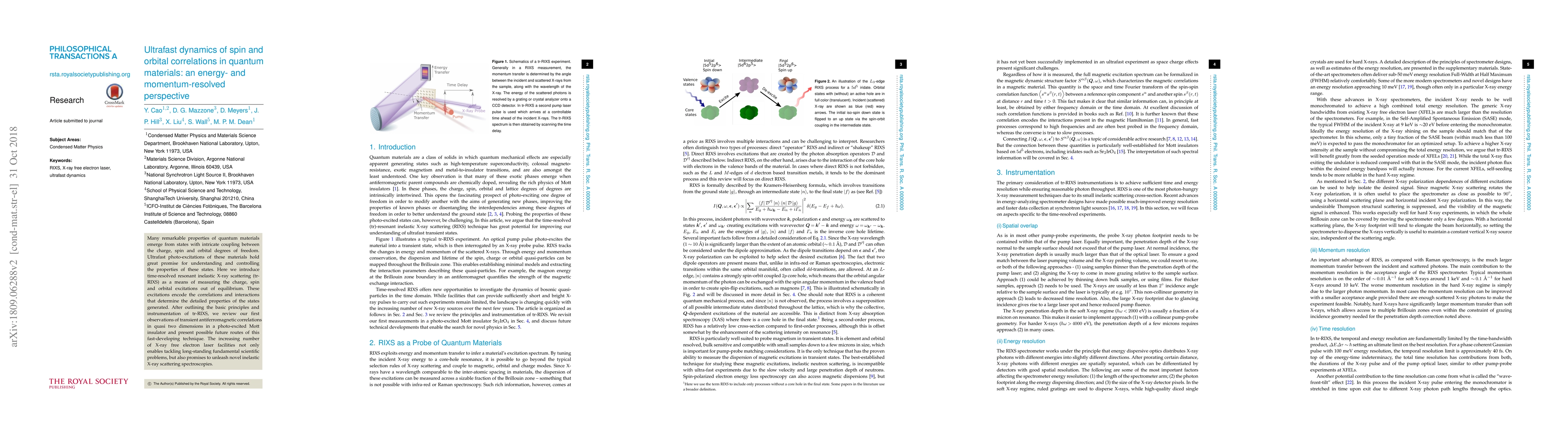 Many remarkable properties of quantum materials emerge from states with intricate coupling between the charge, spin and orbital degrees of freedom. Ultrafast photo-excitations of these materials hold great promise for understanding and controlling the properties of these states. Here we introduce time-resolved resonant inelastic X-ray scattering (trRIXS) as a means of measuring charge, spin and orbital excitations out of equilibrium. These excitations encode the correlations and interactions that determine the detailed properties of the states generated. After outlining the basic principles and instrumentation of tr-RIXS, we review our first observations of transient antiferromagnetic correlations in quasi-two dimensions in a photo-excited Mott insulator and present possible future routes of this fast-developing technique. The increasing number of X-ray free electron laser facilities not only enables tackling long-standing fundamental scientific problems, but also promises to unleash novel inelastic X-ray scattering spectroscopies