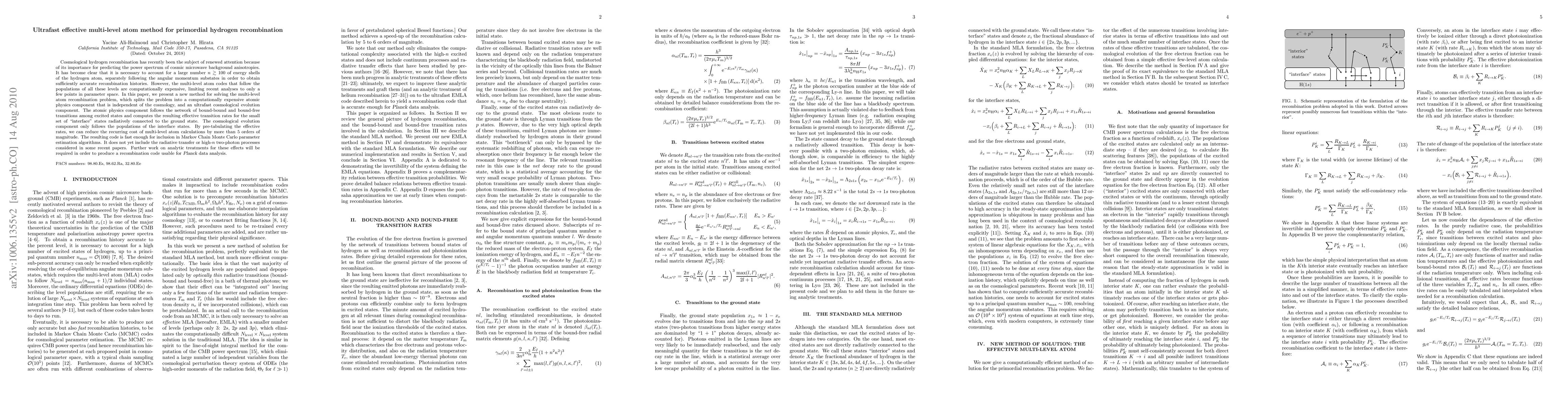 This paper introduces an ultrafast method for solving the multi-level atom recombination problem in cosmological hydrogen recombination, significantly reducing computational costs by separating atomic physics from cosmological evolution. The method pre-tabulates effective transition rates for a small set of interface states, enabling fast calculations suitable for parameter estimation algorithms.