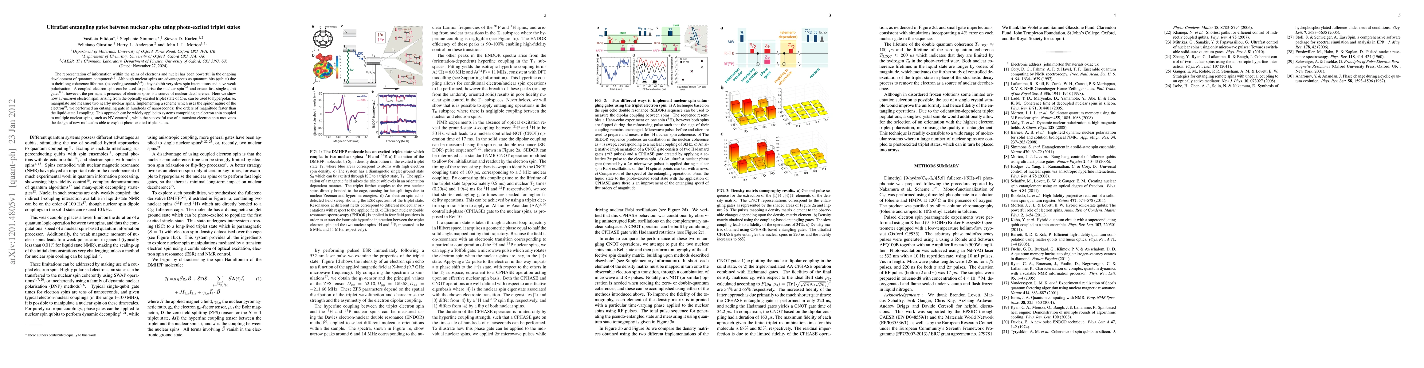 This paper demonstrates ultrafast entangling gates between nuclear spins using transient photo-excited triplet states in C60, achieving gate speeds five orders of magnitude faster than conventional liquid-state J coupling. This approach leverages the spinor nature of the electron to hyperpolarize and manipulate nuclear spins, offering a potential pathway for enhancing quantum computing with nuclear qubits.