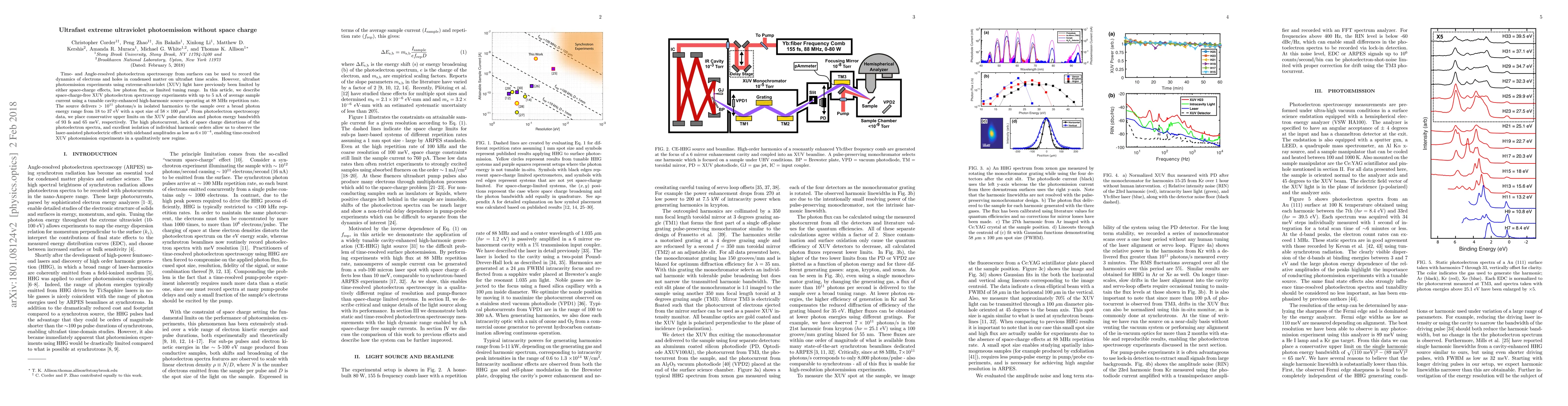 Time- and Angle-resolved photoelectron spectroscopy from surfaces can be used to record the dynamics of electrons and holes in condensed matter on ultrafast time scales. However, ultrafast photoemission experiments using extreme-ultraviolet (XUV) light have previously been limited by either space-charge effects, low photon flux, or limited tuning range. In this article, we describe space-charge-free XUV photoelectron spectroscopy experiments with up to 5 nA of average sample current using a tunable cavity-enhanced high-harmonic source operating at 88 MHz repetition rate. The source delivers $ > 10^{11}$ photons/s in isolated harmonics to the sample over a broad photon energy range from 18 to 37 eV with a spot size of $58 \times 100 \; \mu$m$^2$. From photoelectron spectroscopy data, we place conservative upper limits on the XUV pulse duration and photon energy bandwidth of 93 fs and 65 meV, respectively. The high photocurrent, lack of space charge distortions of the photoelectron spectra, and excellent isolation of individual harmonic orders allow us to observe the laser-assisted photoelectric effect with sideband amplitudes as low as $6 \times 10^{-4}$, enabling time-resolved XUV photoemission experiments in a qualitatively new regime.