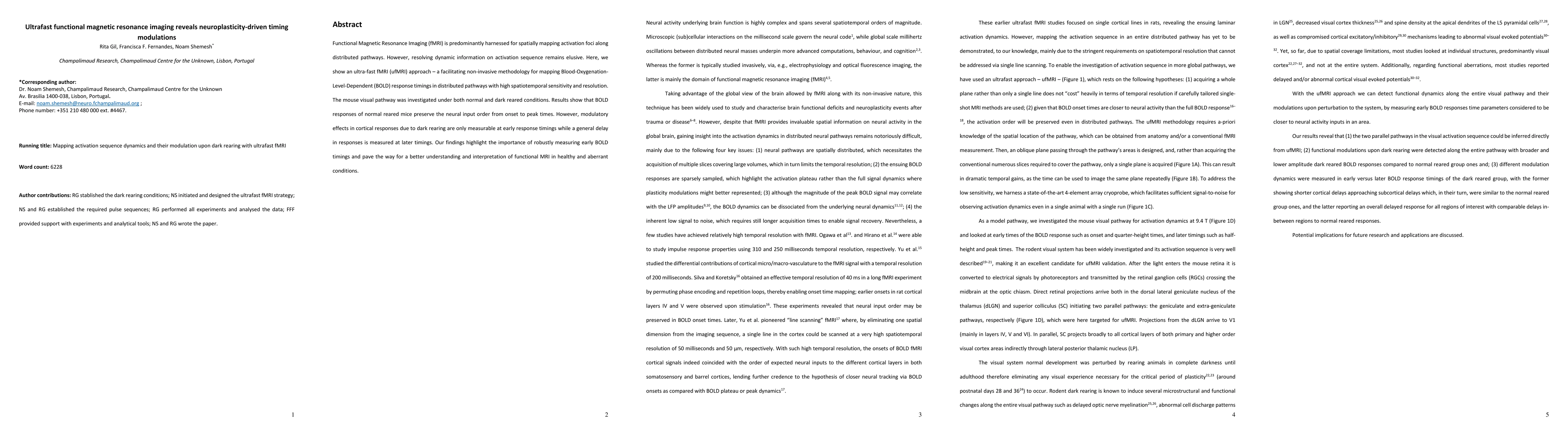 This study introduces an ultra-fast fMRI (ufMRI) technique to map BOLD response timings in distributed pathways with high sensitivity. Findings reveal that BOLD response timings in normal mice maintain the order of neural input, while dark rearing induces early timing modulations and delays in later responses, underscoring the significance of early BOLD timings for interpreting fMRI data.