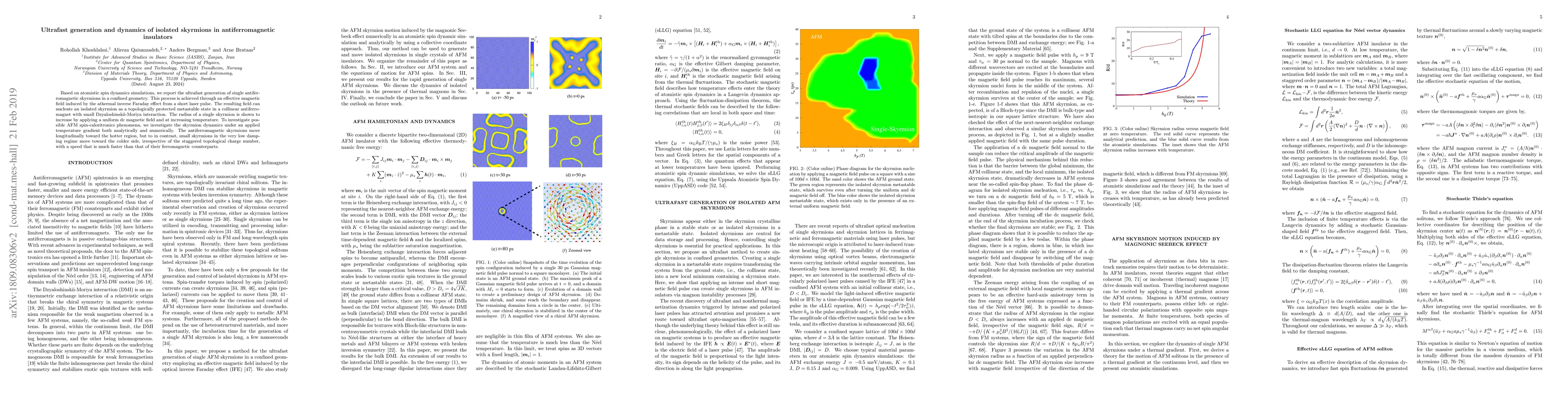 Researchers created and studied isolated skyrmions in antiferromagnetic insulators using laser pulses and magnetic fields, showing they can move towards warmer or cooler temperatures at different speeds.