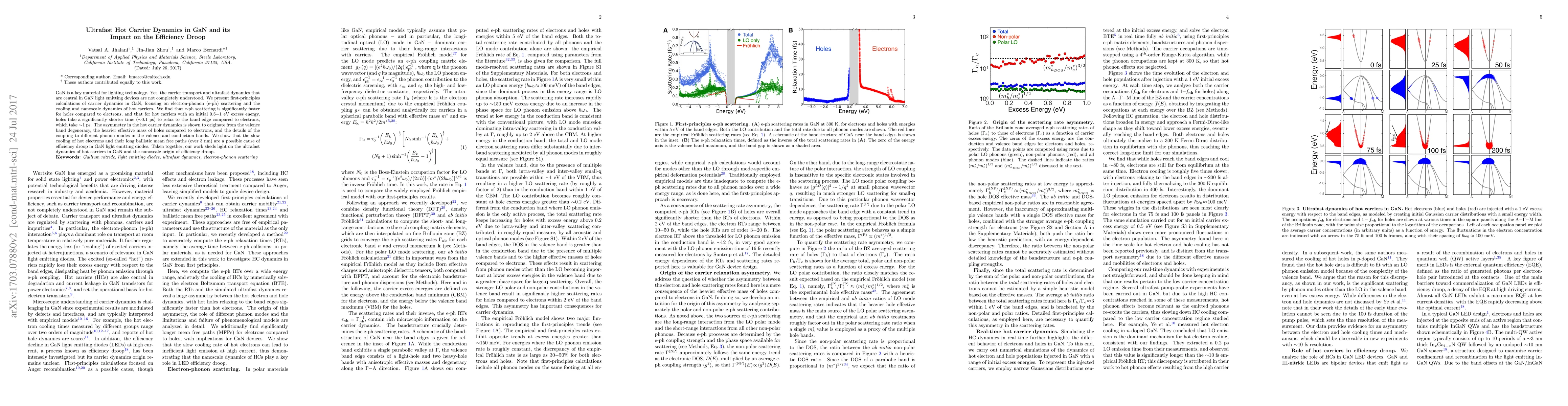 Detailed first-principles calculations of carrier dynamics in GaN, including electron-phonon scattering rates and hot carrier cooling mechanisms.