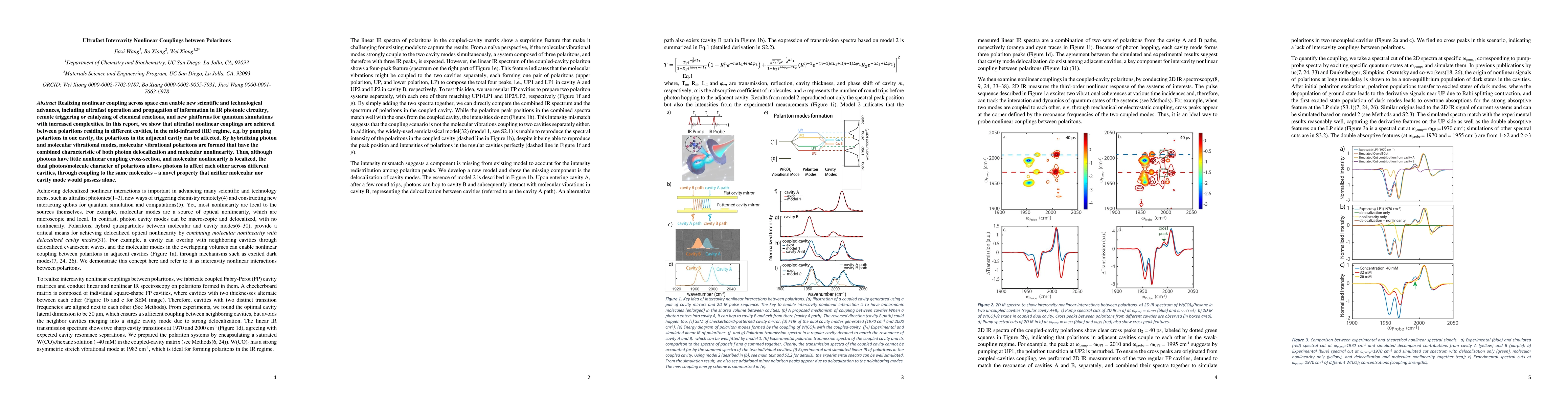 This paper demonstrates ultrafast nonlinear couplings between polaritons in different mid-infrared cavities, enabling new scientific and technological advances. The study shows that polaritons in one cavity can influence those in adjacent cavities through hybrid photon-molecular modes, achieving cross-cavity interactions that neither photons nor molecules alone could achieve.