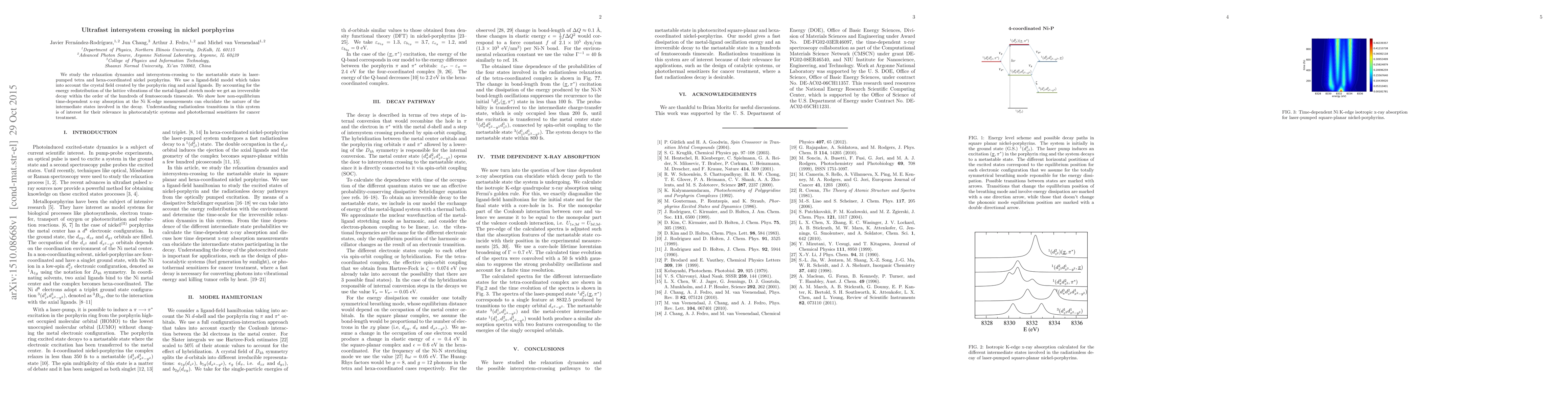 This study investigates the ultrafast intersystem crossing dynamics in nickel porphyrins using laser-pumping and time-resolved x-ray absorption spectroscopy, revealing an irreversible decay on a femtosecond timescale. The research highlights the importance of understanding these transitions for applications in photocatalysis and cancer treatment.