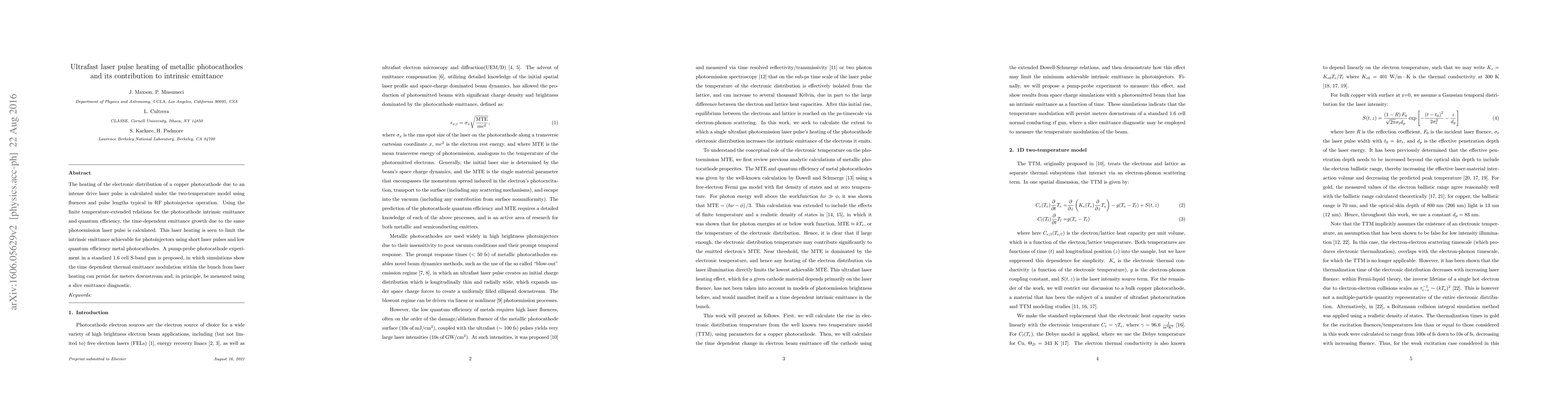 This paper investigates the effect of ultrafast laser pulse heating on the electronic distribution of copper photocathodes, showing that it limits the intrinsic emittance in photoinjectors. A proposed pump-probe experiment aims to measure the time-dependent thermal emittance modulation caused by the laser heating.