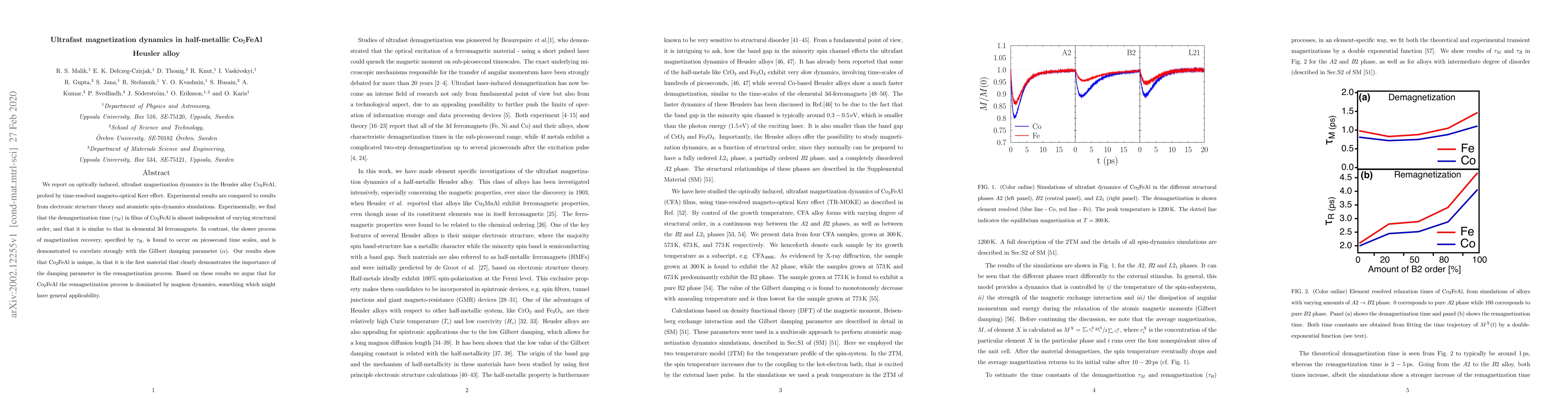 We report on optically induced, ultrafast magnetization dynamics in the Heusler alloy $\mathrm{Co_{2}FeAl}$, probed by time-resolved magneto-optical Kerr effect. Experimental results are compared to results from electronic structure theory and atomistic spin-dynamics simulations. Experimentally, we find that the demagnetization time ($\tau_{M}$) in films of $\mathrm{Co_{2}FeAl}$ is almost independent of varying structural order, and that it is similar to that in elemental 3d ferromagnets. In contrast, the slower process of magnetization recovery, specified by $\tau_{R}$, is found to occur on picosecond time scales, and is demonstrated to correlate strongly with the Gilbert damping parameter ($\alpha$). Our results show that $\mathrm{Co_{2}FeAl}$ is unique, in that it is the first material that clearly demonstrates the importance of the damping parameter in the remagnetization process. Based on these results we argue that for $\mathrm{Co_{2}FeAl}$ the remagnetization process is dominated by magnon dynamics, something which might have general applicability.