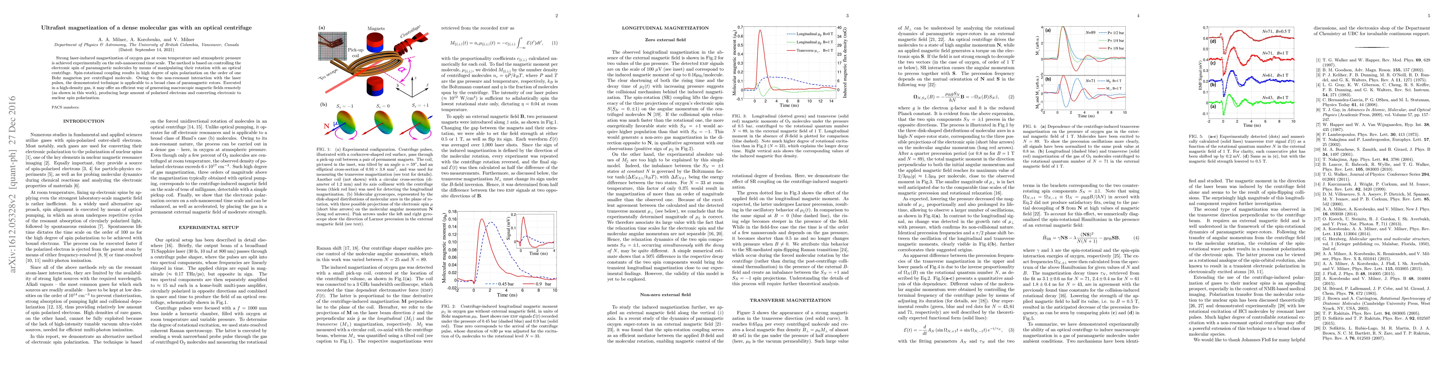 The development and demonstration of an optical centrifuge technique to induce ultrafast magnetization in dense molecular gases by controlling molecular rotation and spin through laser manipulation.
