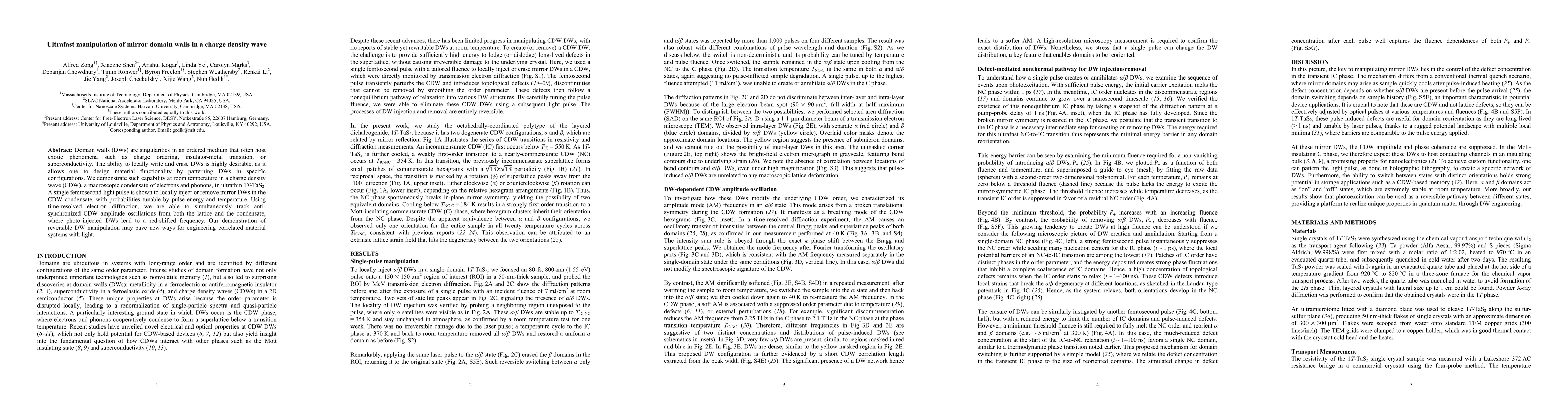 Domain walls (DWs) are singularities in an ordered medium that often host exotic phenomena such as charge ordering, insulator-metal transition, or superconductivity. The ability to locally write and erase DWs is highly desirable, as it allows one to design material functionality by patterning DWs in specific configurations. We demonstrate such capability at room temperature in a charge density wave (CDW), a macroscopic condensate of electrons and phonons, in ultrathin 1T-TaS$_2$. A single femtosecond light pulse is shown to locally inject or remove mirror DWs in the CDW condensate, with probabilities tunable by pulse energy and temperature. Using time-resolved electron diffraction, we are able to simultaneously track anti-synchronized CDW amplitude oscillations from both the lattice and the condensate, where photo-injected DWs lead to a red-shifted frequency. Our demonstration of reversible DW manipulation may pave new ways for engineering correlated material systems with light.