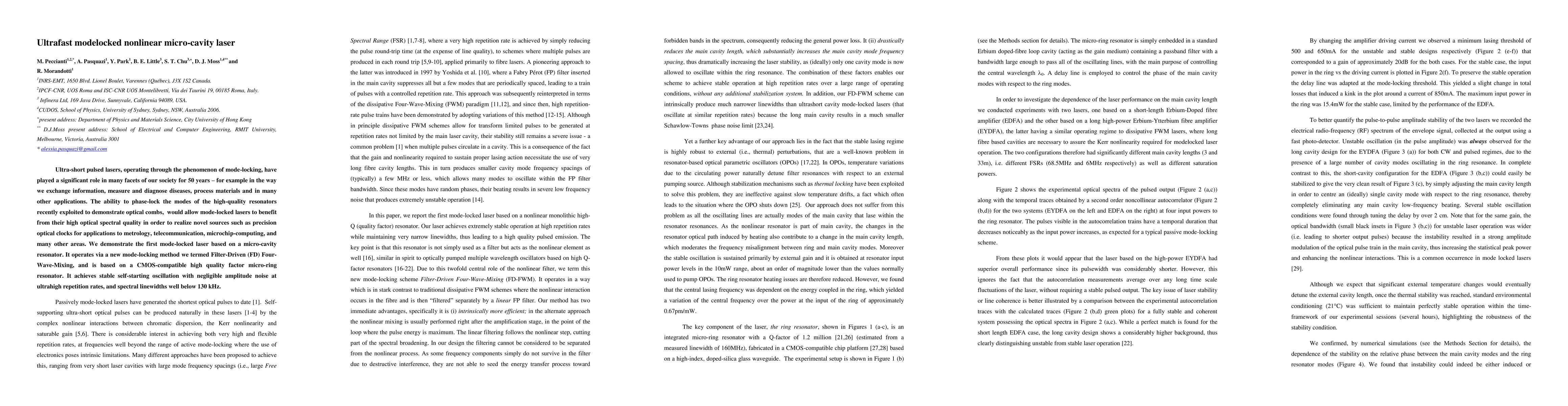 This paper demonstrates the first mode-locked laser utilizing a CMOS-compatible micro-cavity resonator based on a novel Filter-Driven Four-Wave-Mixing method, achieving stable ultrafast pulse generation with minimal noise and high spectral quality. This innovation holds promise for advanced applications in metrology, telecommunications, and microchip computing.