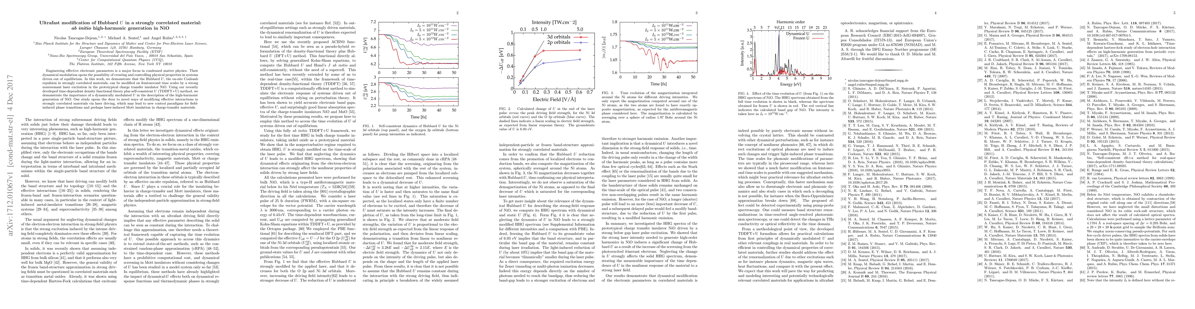 This research demonstrates the ability to dynamically modify the Hubbard $U$ on femtosecond scales in NiO using strong laser excitation, revealing its significance in high-harmonic generation. The study employs TDDFT+U method and suggests potential for controlling phase transitions and inducing Mott insulation in charge-transfer materials via laser-driven interactions.