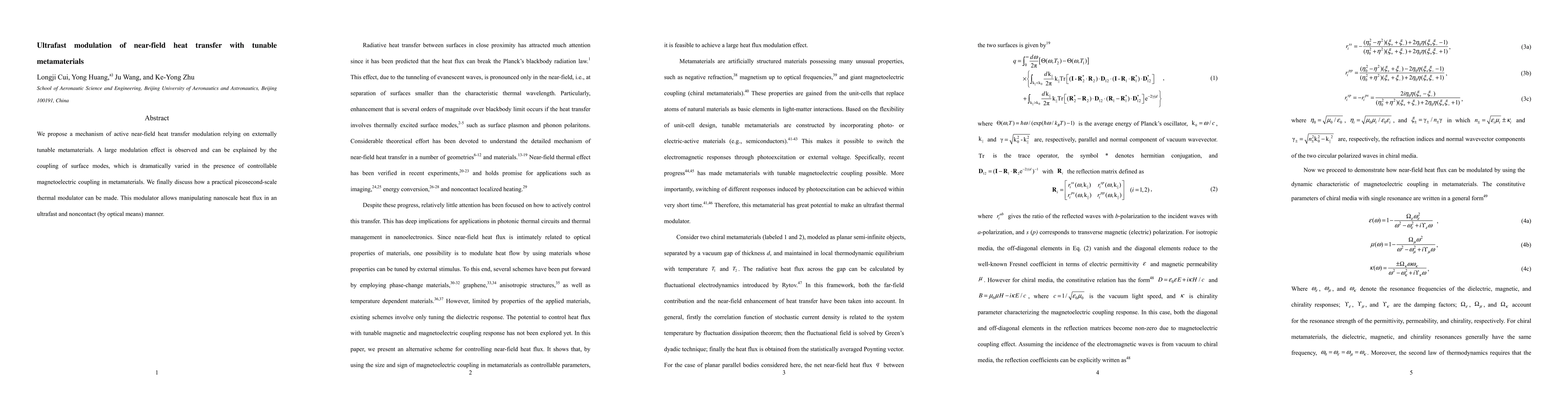 A theoretical framework was developed to describe near-field heat flux modulation in chiral metamaterials.