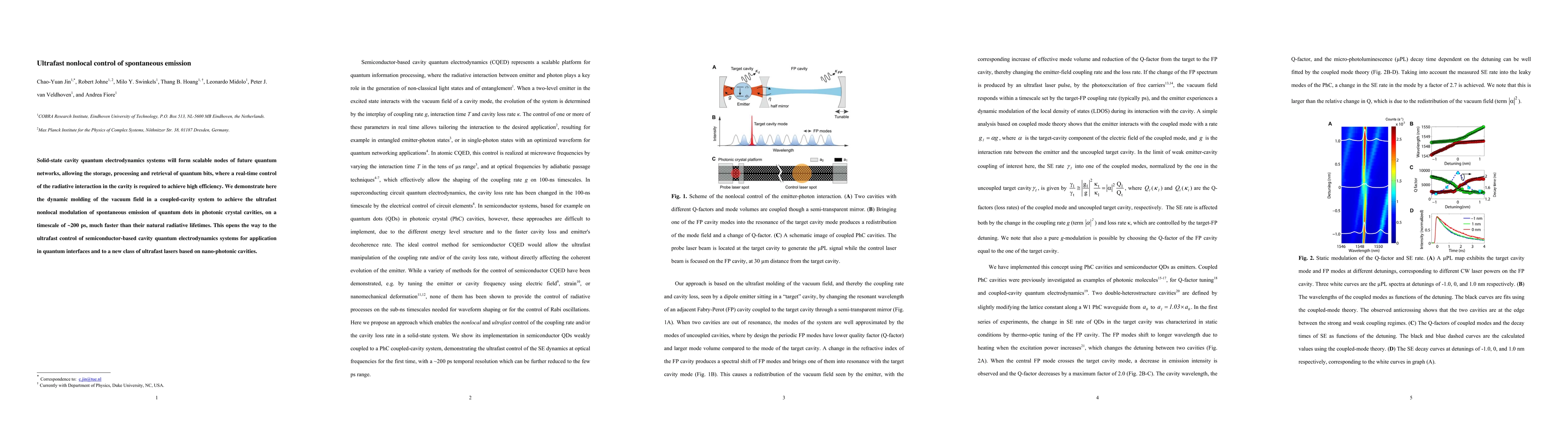 The paper presents a method for ultrafast nonlocal control of spontaneous emission using free-carrier injection in a coupled-cavity system, enabling control beyond GHz frequencies.
