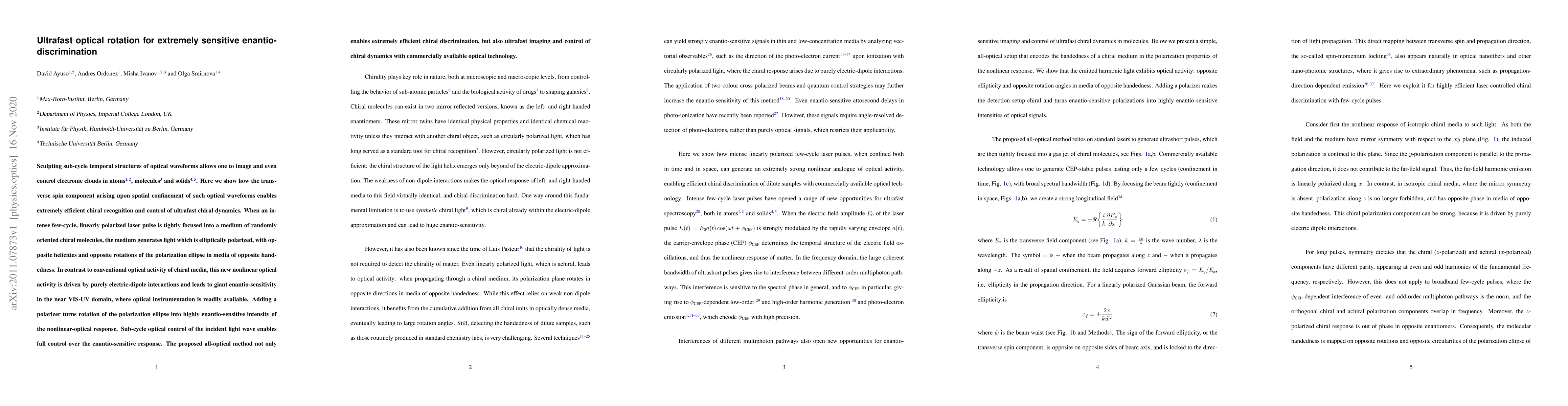 Sculpting sub-cycle temporal structures of optical waveforms allows one to image and even control electronic clouds in atoms, molecules and solids. Here we show how the transverse spin component arising upon spatial confinement of such optical waveforms enables extremely efficient chiral recognition and control of ultrafast chiral dynamics. When an intense few-cycle, linearly polarized laser pulse is tightly focused into a medium of randomly oriented chiral molecules, the medium generates light which is elliptically polarized, with opposite helicities and opposite rotations of the polarization ellipse in media of opposite handedness. In contrast to conventional optical activity of chiral media, this new nonlinear optical activity is driven by purely electric-dipole interactions and leads to giant enantio-sensitivity in the near VIS-UV domain, where optical instrumentation is readily available. Adding a polarizer turns rotation of the polarization ellipse into highly enantio-sensitive intensity of the nonlinear-optical response. Sub-cycle optical control of the incident light wave enables full control over the enantio-sensitive response. The proposed all-optical method not only enables extremely efficient chiral discrimination, but also ultrafast imaging and control of chiral dynamics with commercially available optical technology.