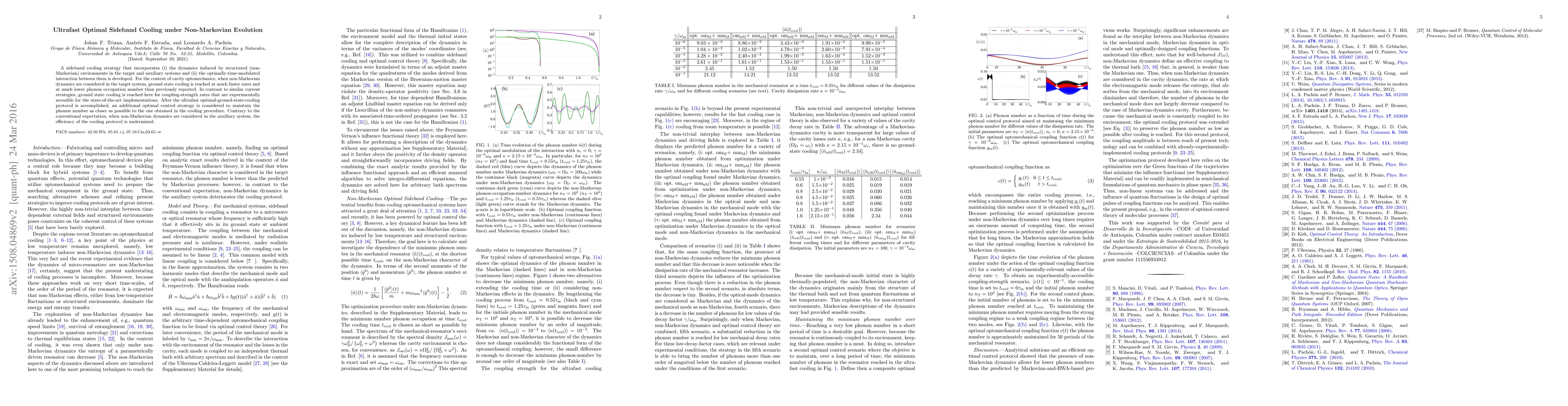 A sideband cooling strategy that incorporates (i) the dynamics induced by structured (non-Markovian) environments in the target and auxiliary systems and (ii) the optimally-time-modulated interaction between them is developed. For the context of cavity optomechanics, when non-Markovian dynamics are considered in the target system, ground state cooling is reached at much faster rates and at much lower phonon occupation number than previously reported. In constrast to similar current strategies, ground state cooling is reached here for coupling-strength rates that are experimentally accesible for the state-of-the-art implementations. After the ultrafast optimal-ground-state-cooling protocol is accomplished, an additional optimal control strategy is considered to maintain the phonon number as closer as possible to the one obtained in the cooling procedure. Contrary to the conventional expectation, when non-Markovian dynamics are considered in the auxiliary system, the efficiency of the cooling protocol is undermined.