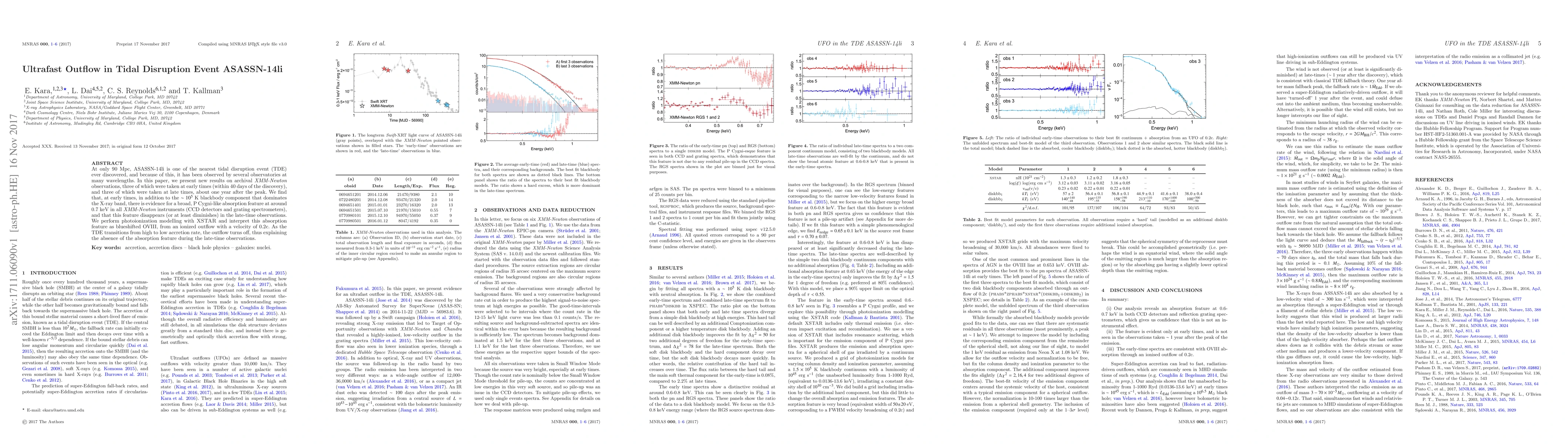 This paper reports on the detection of an ultrafast outflow in the tidal disruption event ASASSN-14li using XMM-Newton observations. Early-time data show a broad absorption feature interpreted as blueshifted OVIII, indicative of an ionized outflow moving at 0.2c, which disappears in later observations as the outflow ceases with declining accretion.
