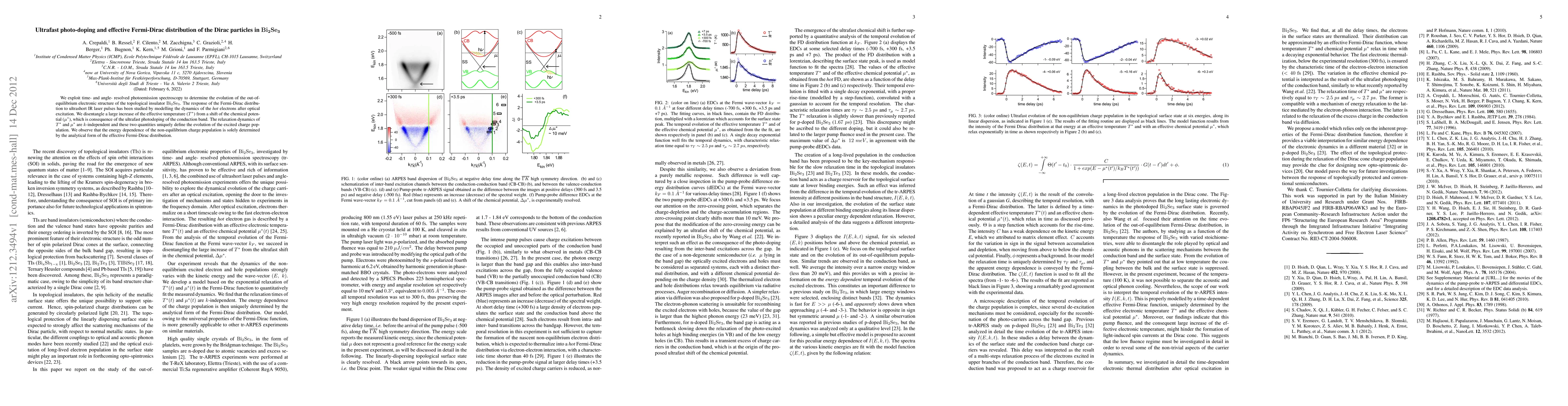 We exploit time- and angle- resolved photoemission spectroscopy to determine the evolution of the out-of-equilibrium electronic structure of the topological insulator Bi2Se. The response of the Fermi-Dirac distribution to ultrashort IR laser pulses has been studied by modelling the dynamics of the hot electrons after optical excitation. We disentangle a large increase of the effective temperature T* from a shift of the chemical potential mu*, which is consequence of the ultrafast photodoping of the conduction band. The relaxation dynamics of T* and mu* are k-independent and these two quantities uniquely define the evolution of the excited charge population. We observe that the energy dependence of the non-equilibrium charge population is solely determined by the analytical form of the effective Fermi-Dirac distribution.