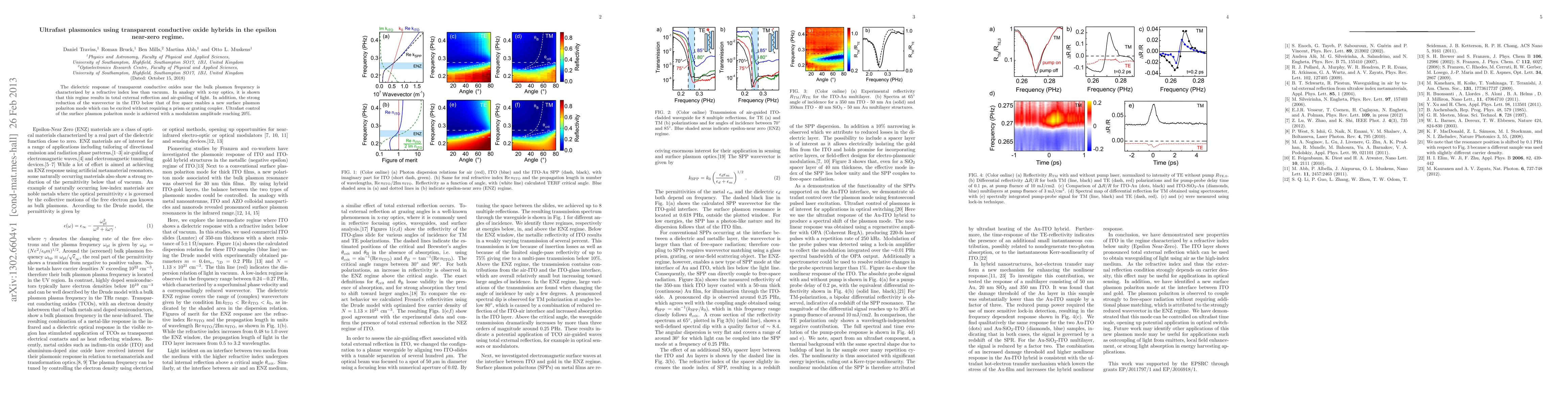 This paper explores the use of transparent conductive oxides in the epsilon near-zero regime to achieve ultrafast plasmonics, demonstrating total external reflection and air-guiding of light, and introducing a new surface plasmon polariton mode excited without traditional coupling methods. Ultrafast modulation of this mode is achieved with a modulation amplitude of up to 20%.