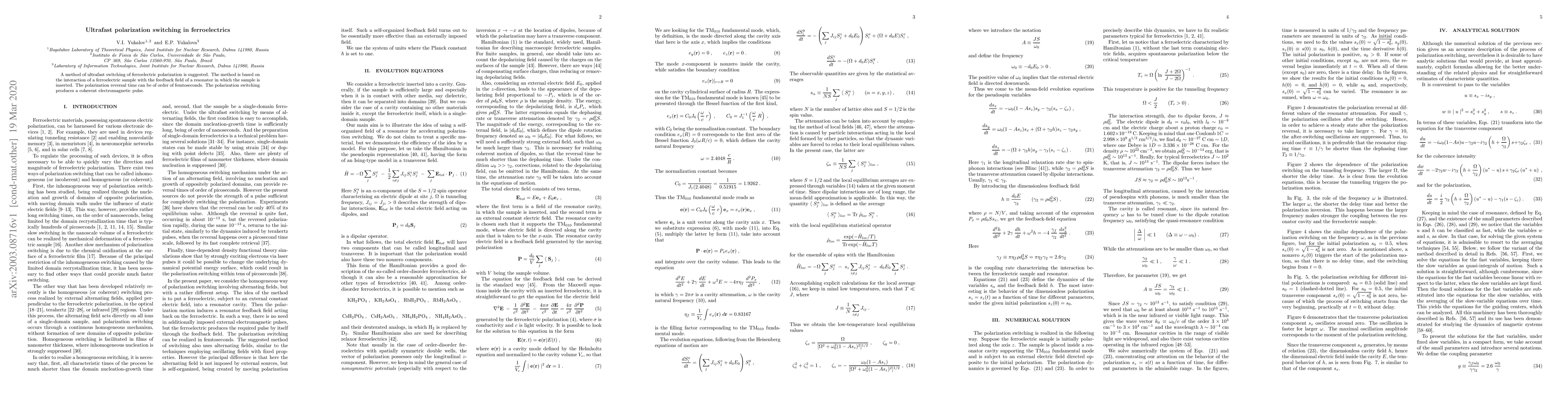 This paper proposes an ultrafast method for switching ferroelectric polarization using a resonator's feedback field, achieving femtosecond reversal times and generating coherent electromagnetic pulses.