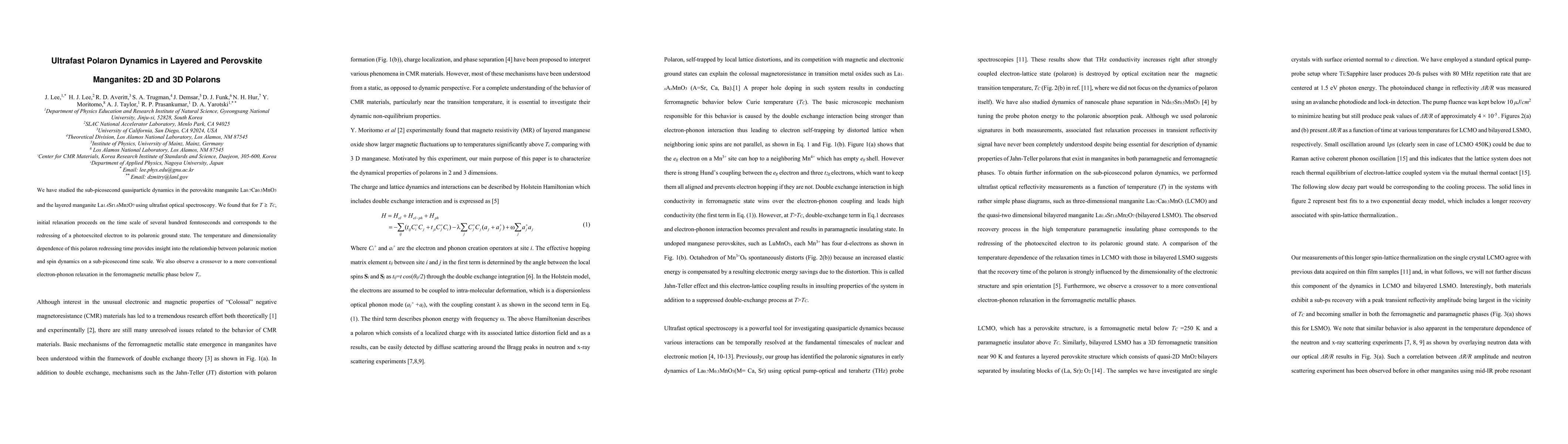 This study investigates ultrafast polaron dynamics in perovskite and layered manganites using ultrafast optical spectroscopy, revealing that above the critical temperature, relaxation occurs on femtosecond timescales, indicating polaron redressing. The research highlights the connection between polaron dynamics and spin fluctuations, with a transition to conventional electron-phonon relaxation below the critical temperature.