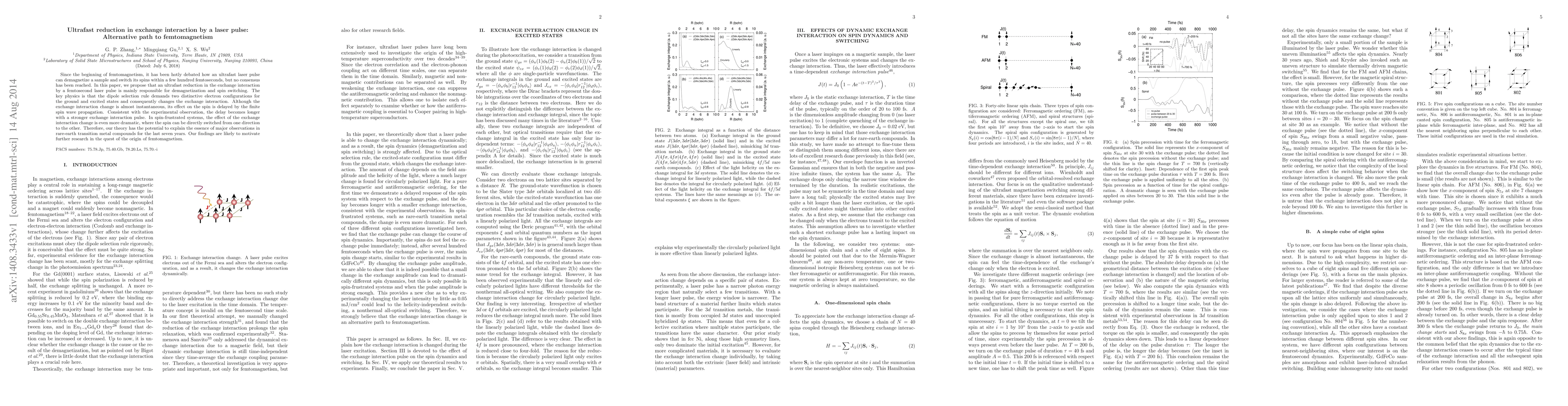 Since the beginning of femtomagnetism, it has been hotly debated how an ultrafast laser pulse can demagnetize a sample and switch its spins within a few hundred femtoseconds, but no consensus has been reached. In this paper, we propose that an ultrafast reduction in the exchange interaction by a femtosecond laser pulse is mainly responsible for demagnetization and spin switching. The key physics is that the dipole selection rule demands two distinctive electron configurations for the ground and excited states and consequently changes the exchange interaction. Although the exchange interaction change is almost instantaneous, its effect on the spin is delayed by the finite spin wave propagation. Consistent with the experimental observation, the delay becomes longer with a stronger exchange interaction pulse. In spin-frustrated systems, the effect of the exchange interaction change is even more dramatic, where the spin can be directly switched from one direction to the other. Therefore, our theory has the potential to explain the essence of major observations in rare-earth transition metal compounds for the last seven years. Our findings are likely to motivate further research in the quest of the origin of femtomagnetism.