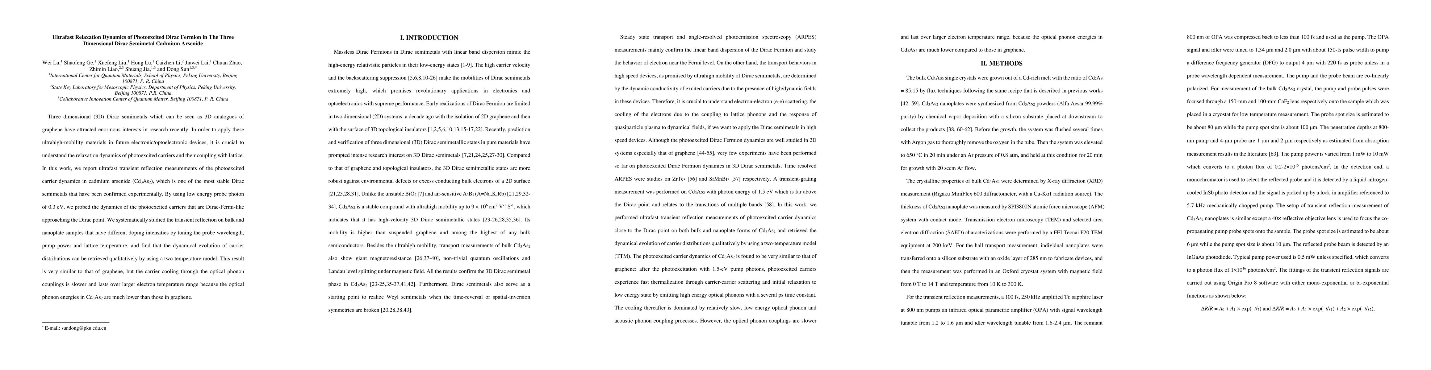 This study investigates the ultrafast relaxation dynamics of photoexcited Dirac fermions in the 3D Dirac semimetal cadmium arsenide (Cd3As2) using transient reflection measurements. The findings reveal slower carrier cooling due to lower optical phonon energies compared to graphene, suggesting unique properties for future electronic/optoelectronic applications.