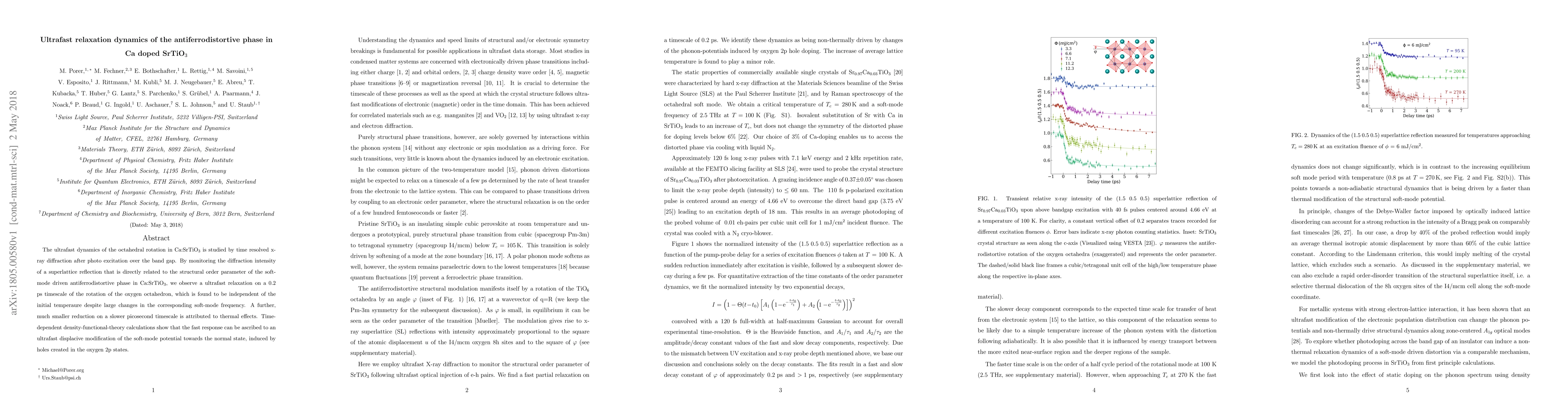 The ultrafast dynamics of the octahedral rotation in Ca:SrTiO3 is studied by time resolved x-ray diffraction after photo excitation over the band gap. By monitoring the diffraction intensity of a superlattice reflection that is directly related to the structural order parameter of the soft-mode driven antiferrodistortive phase in Ca:SrTiO3, we observe a ultrafast relaxation on a 0.2 ps timescale of the rotation of the oxygen octahedron, which is found to be independent of the initial temperaure despite large changes in the corresponding soft-mode frequency. A further, much smaller reduction on a slower picosecond timescale is attributed to thermal effects. Time-dependent density-functional-theory calculations show that the fast response can be ascribed to an ultrafast displacive modification of the soft-mode potential towards the normal state, induced by holes created in the oxygen 2p states.